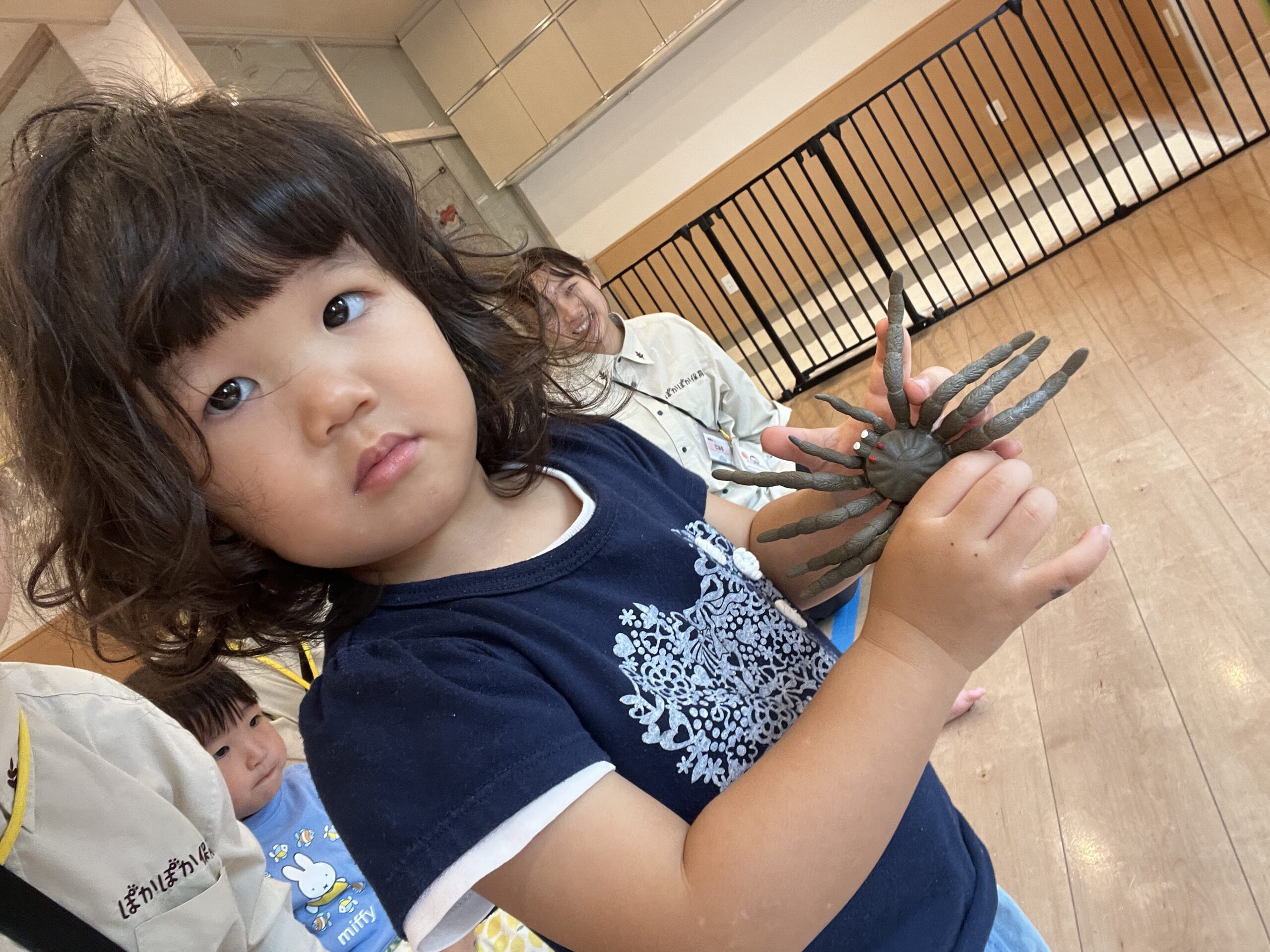 「これ、なんだろう?」「セミさんのお洋服かな?」と、初めて見る子も多く、興味津々で観察していました!