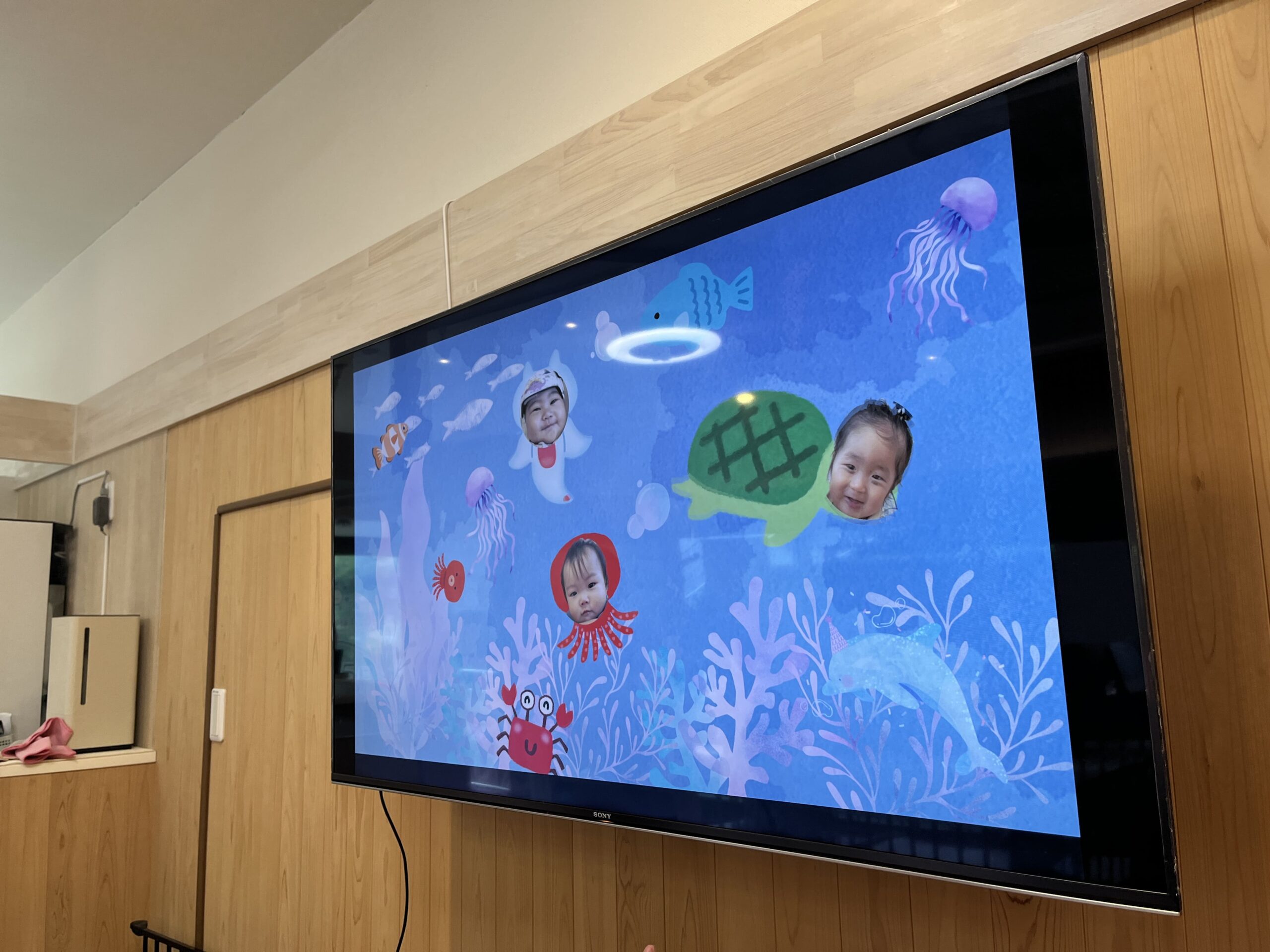 海ではお魚を釣っているお友だちや、海の中には、色々な生き物や人魚さんに変身したお友だちもいて大盛り上がり。
