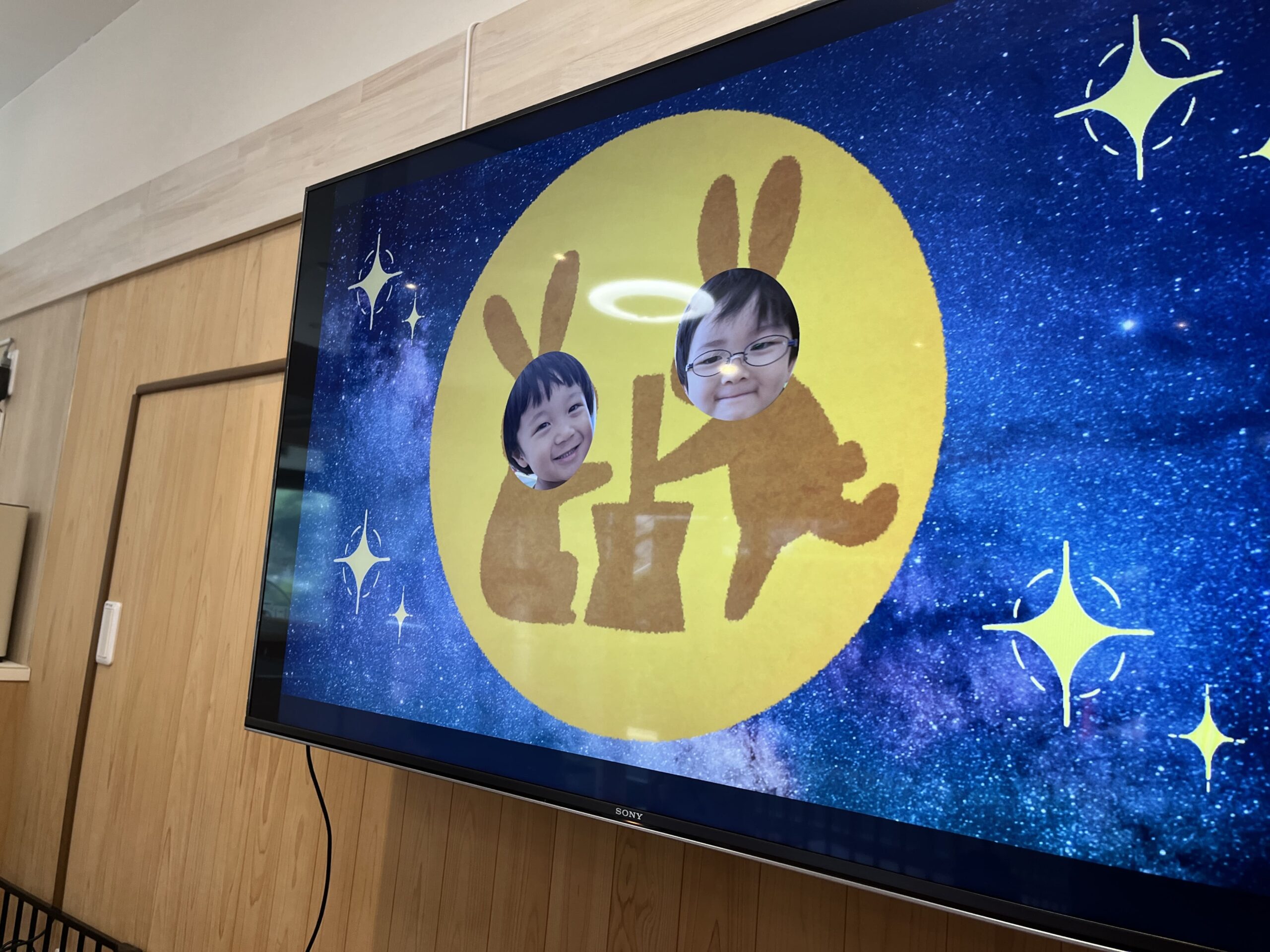 最後はきれいな星空天体望遠鏡で観察してみると…お月様の中に、うさぎさんになってお餅つきをしているお友だちもいました。