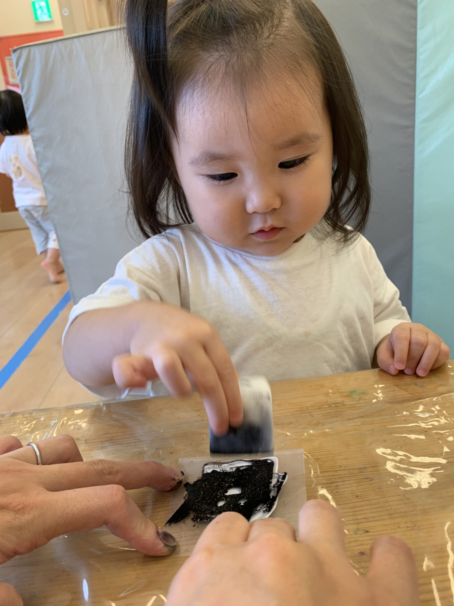 おててが真っ黒になったけど、自分でできたね!嬉しいね♬