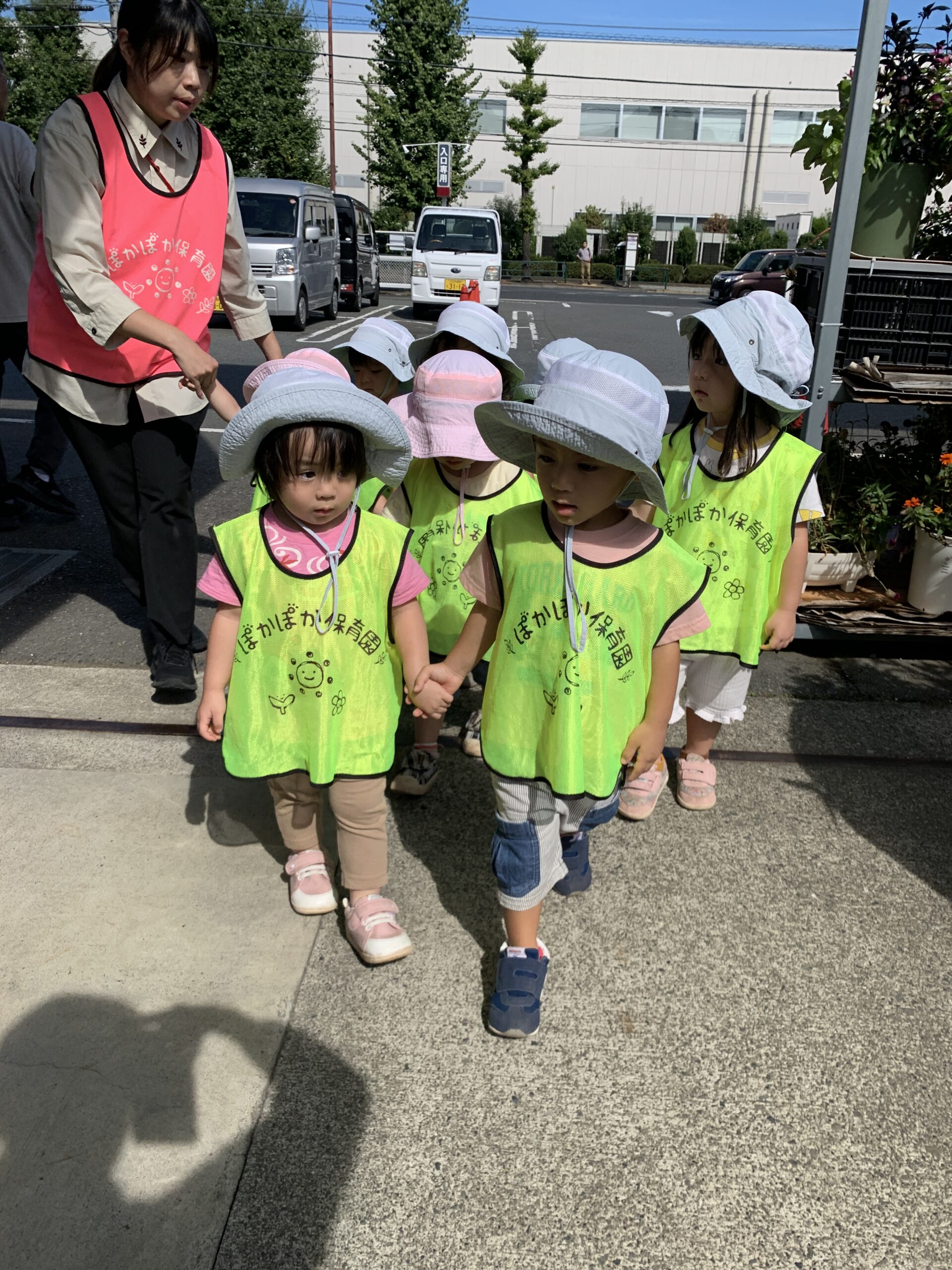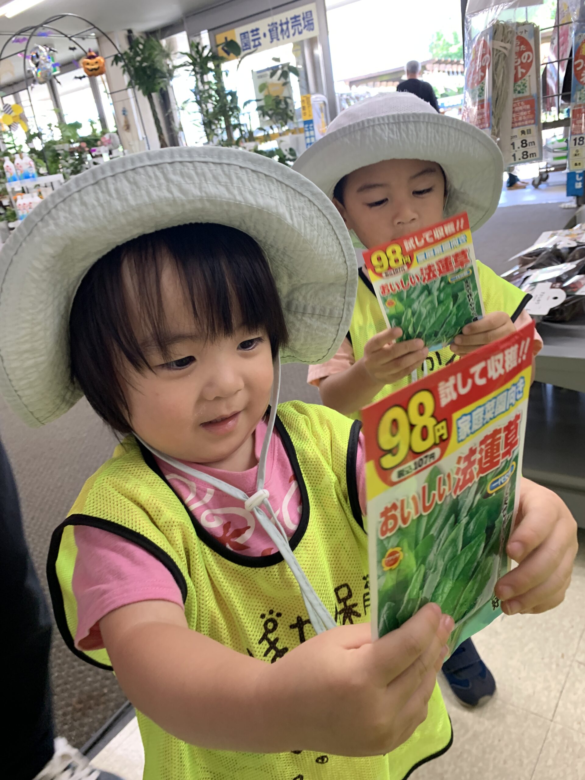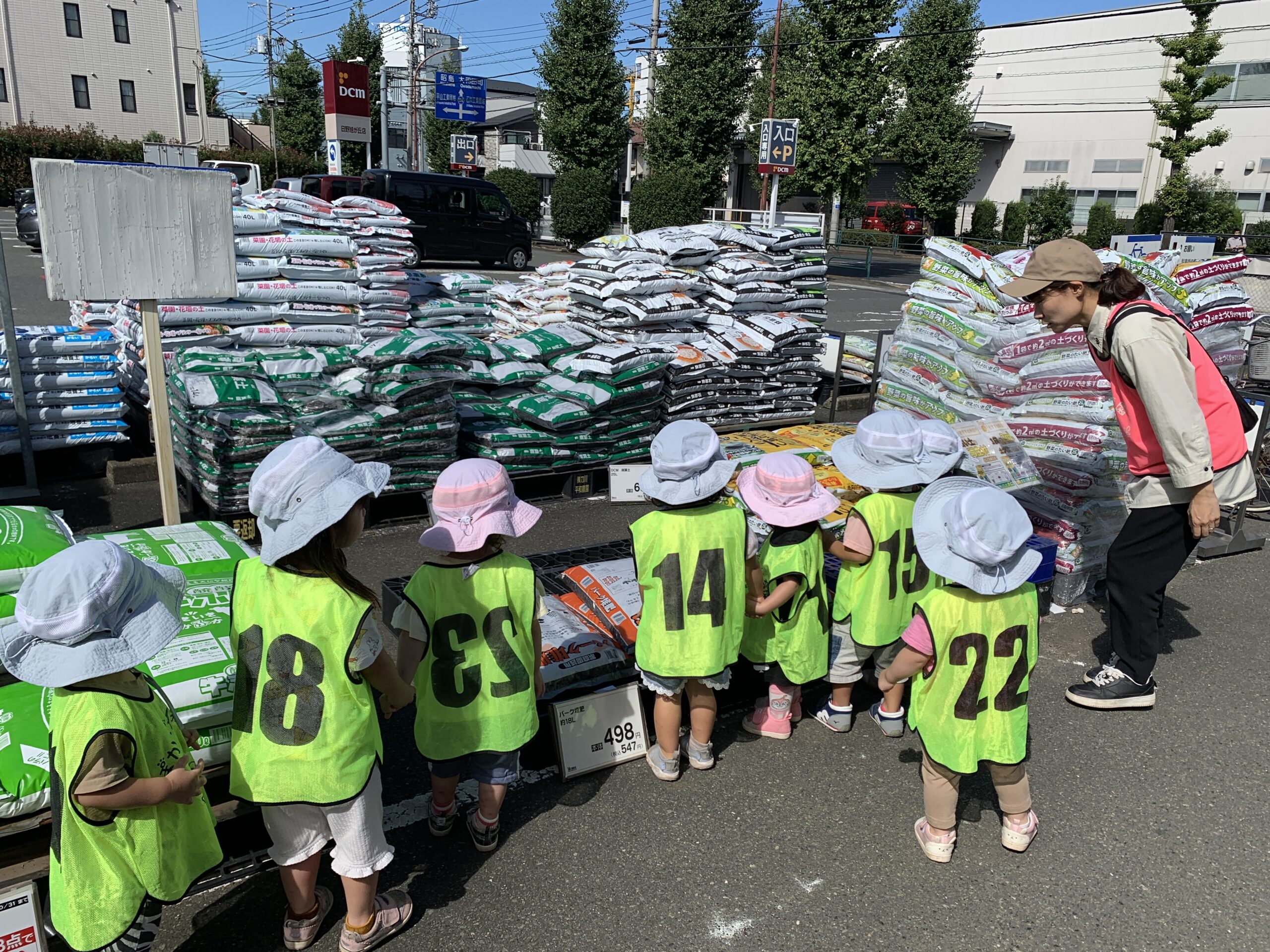 一方、1・2歳児のお友達は、11月に植えるほうれん草の種と土を買いに、お店までお買い物に出かけました。「みんなで一緒にほうれん草育てようね!」という先生の声に、子どもたちは「うん!楽しみだね!」と元気な返事をしていました。