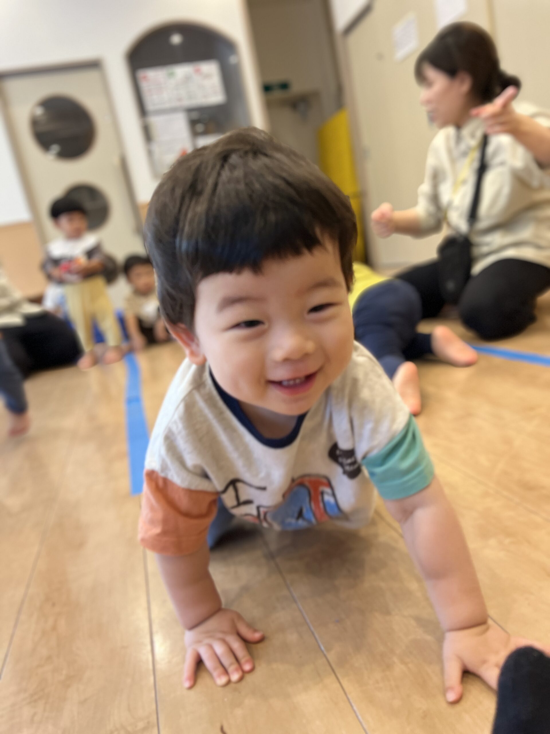 今日はとってもいいお天気でしたね!0・1・2歳児クラスの子どもたちも朝から元気いっぱいの笑顔で、園内は明るい一日の始まりとなりました。