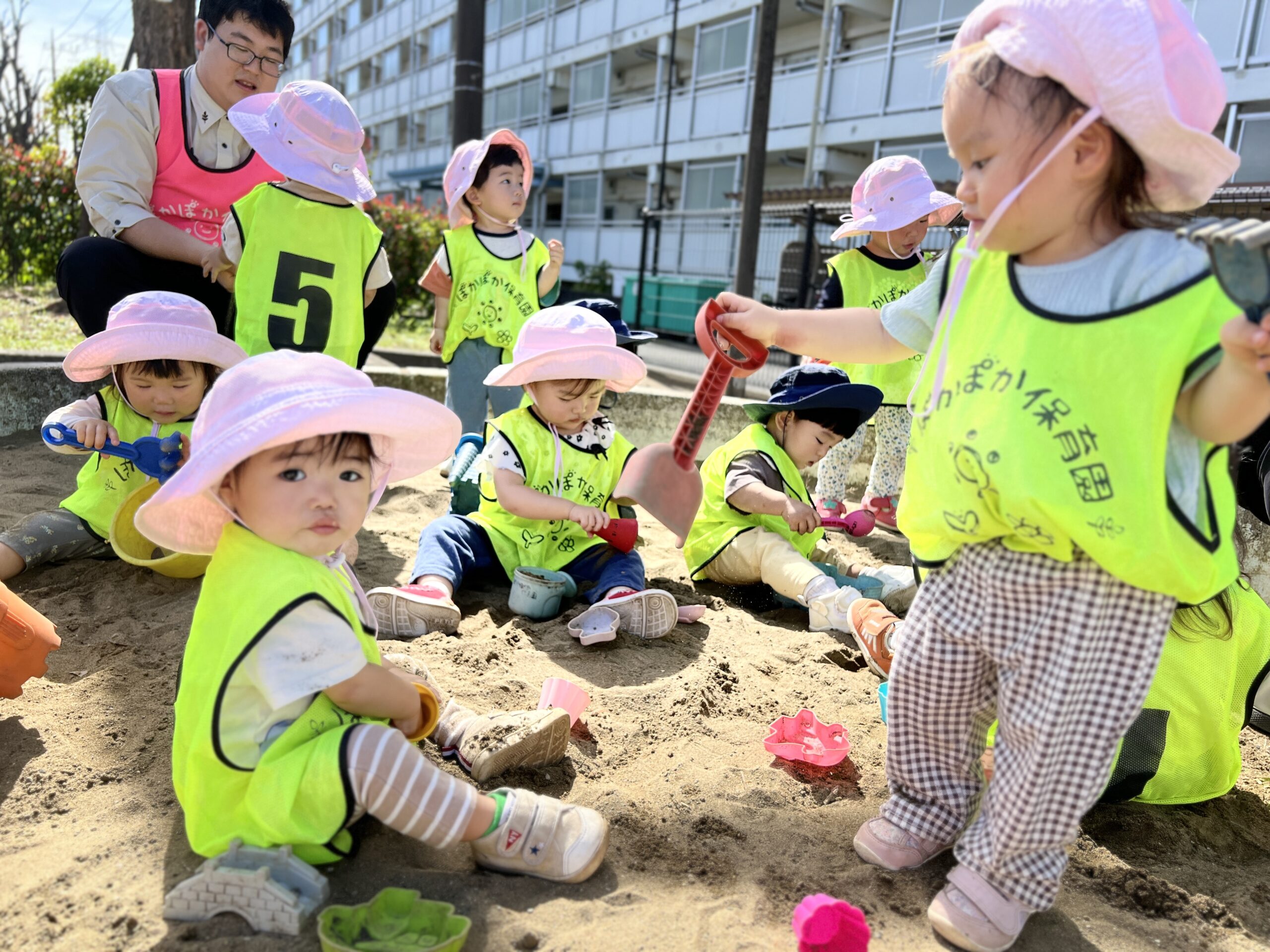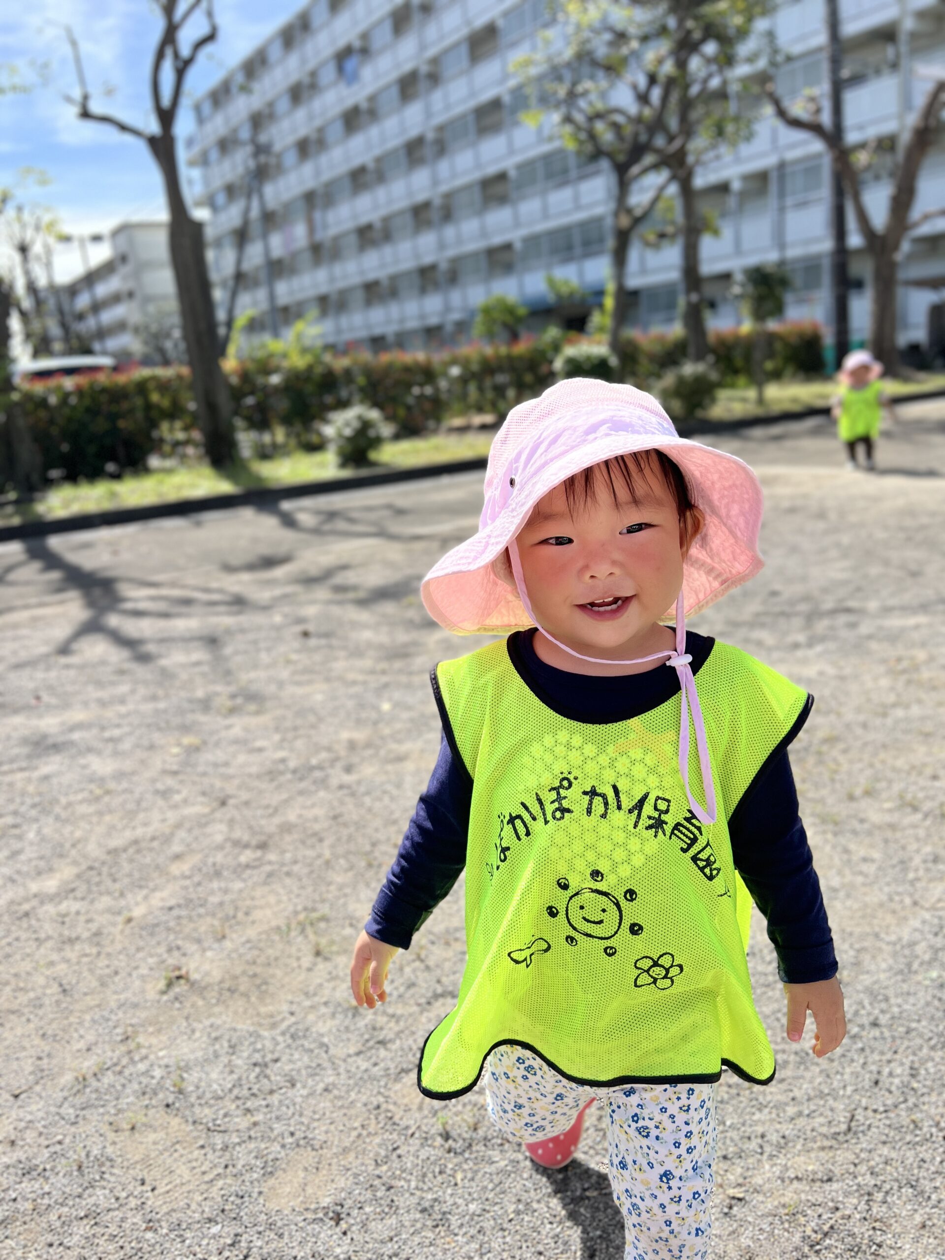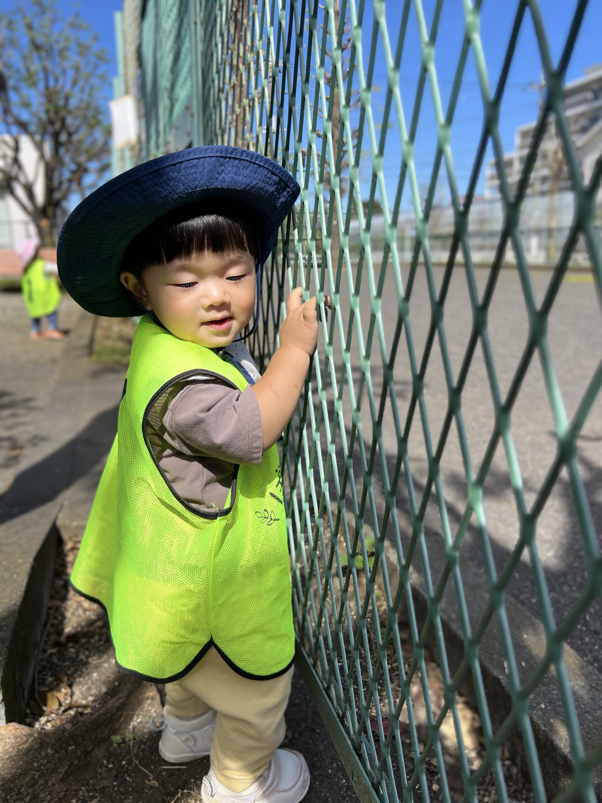 午前中、お天気が良かったので、0・1歳児のお友達は近くの公園へ遊びに行きました!
