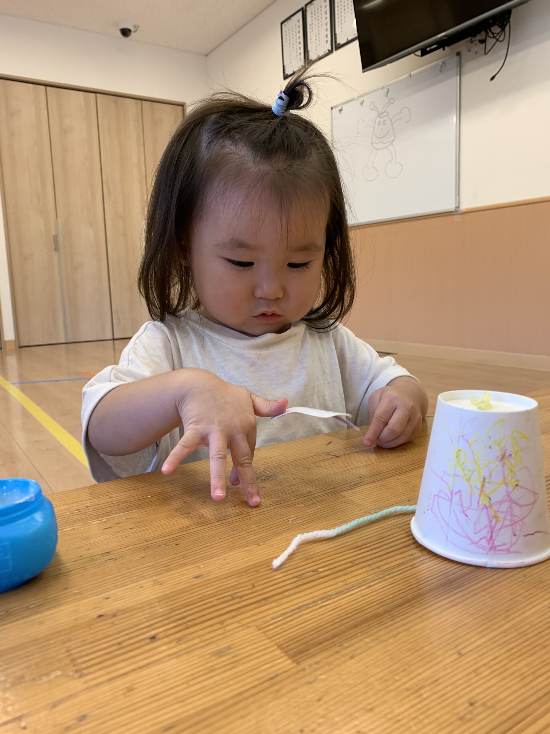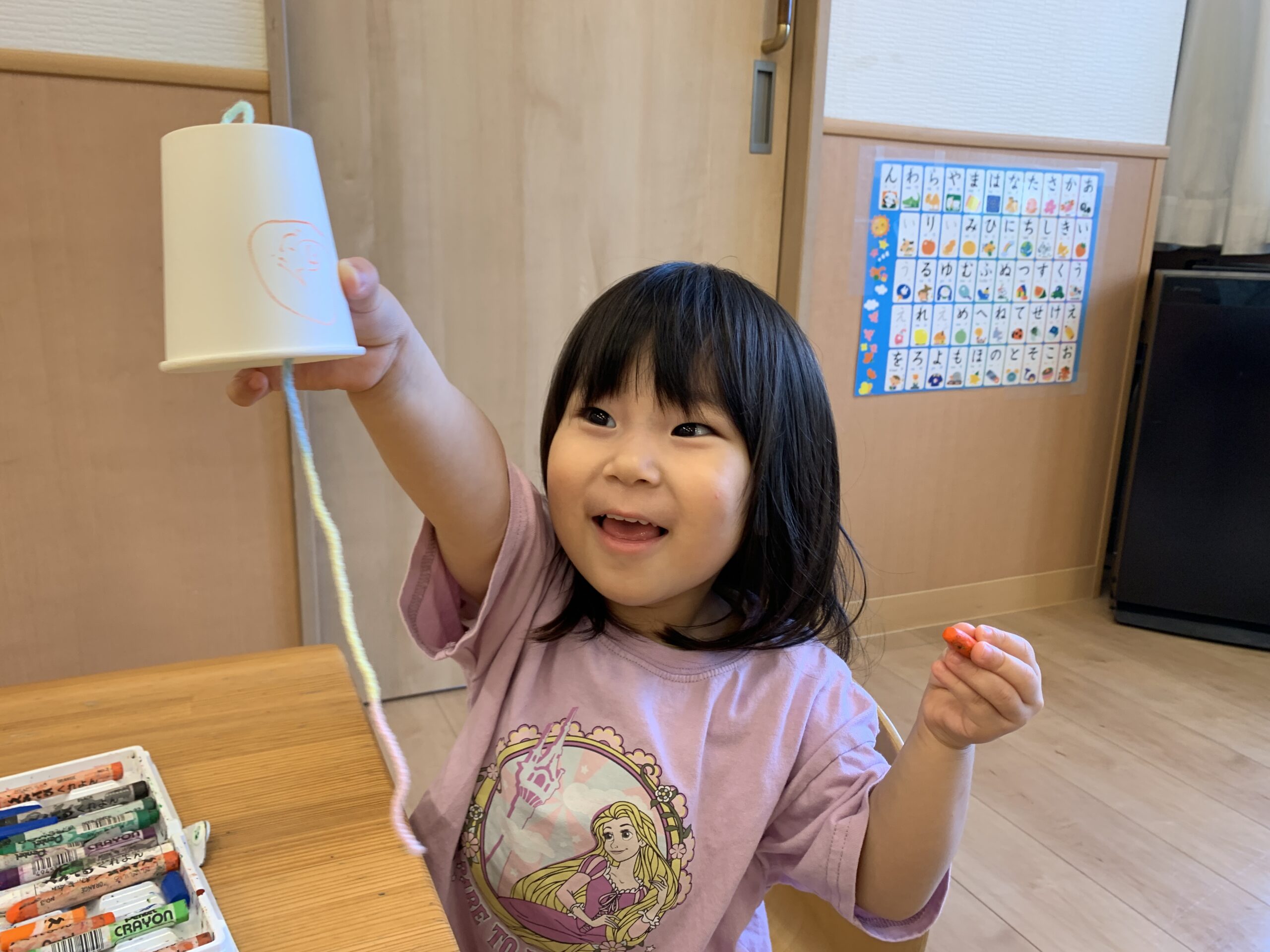 一方、虹組のお友達は、お製作活動で紙コップに顔を描きました!