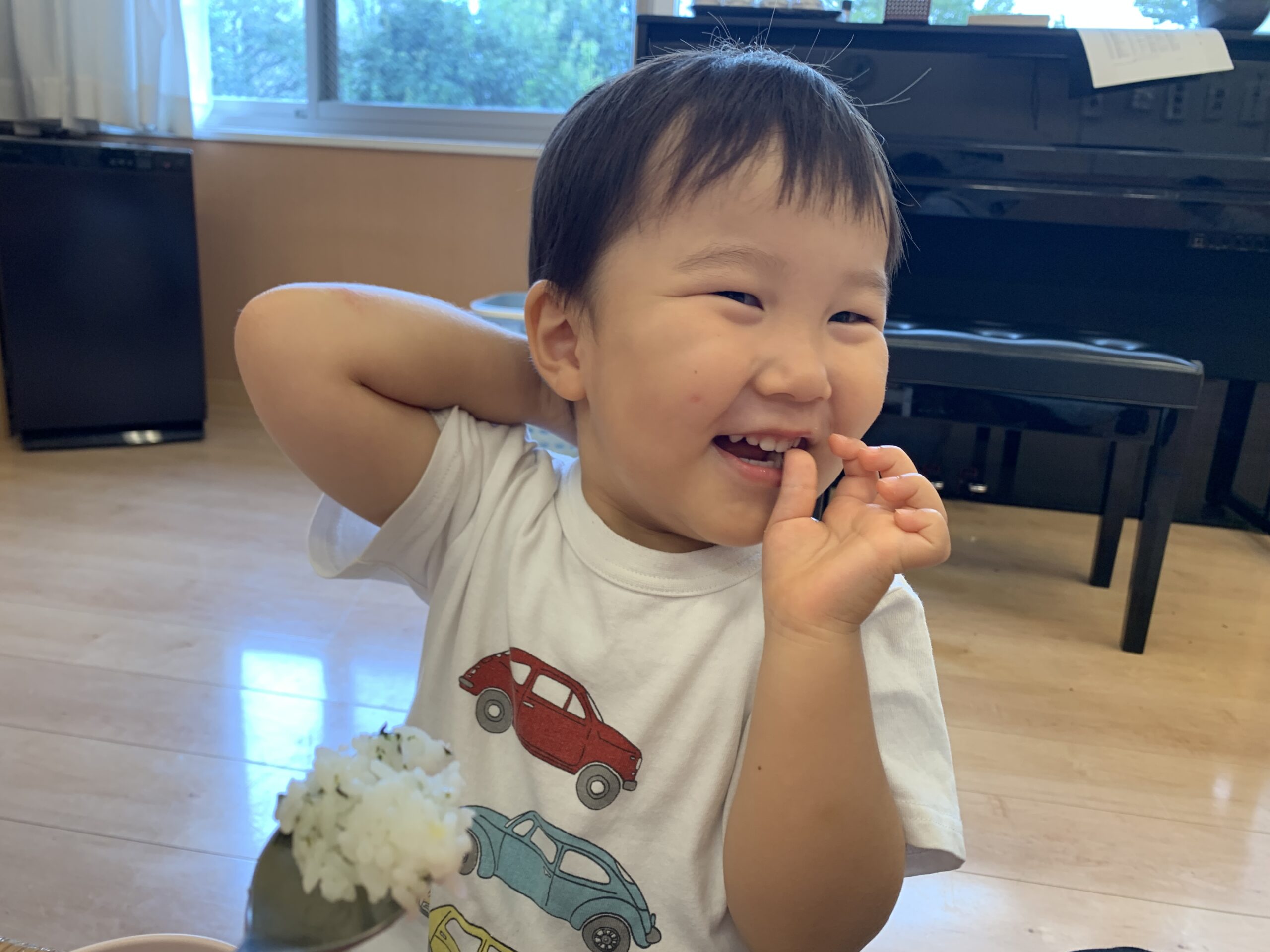 今日は少し曇り空の一日となりましたが、子どもたちは室内やテラスで元気いっぱい、