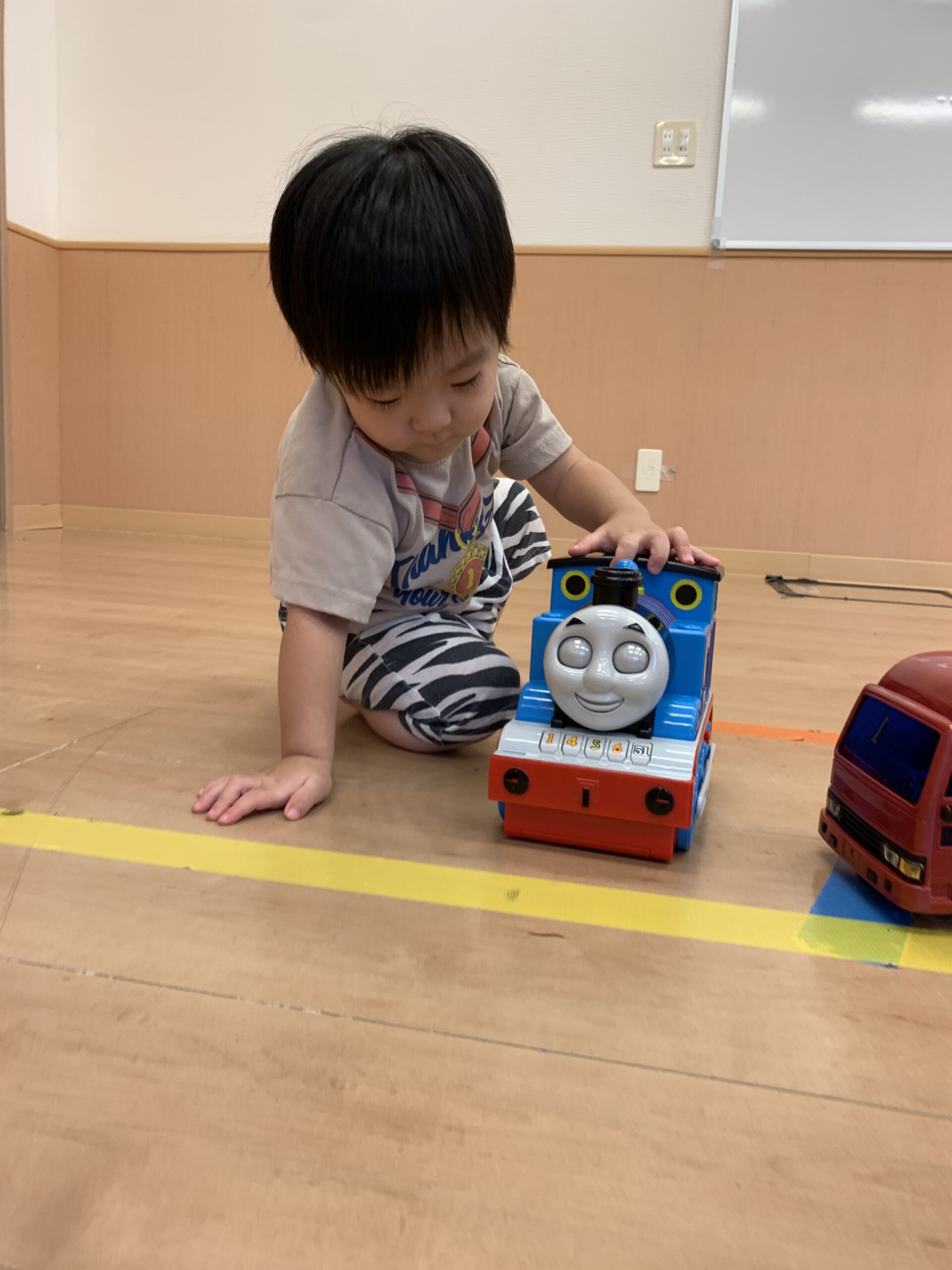 ワークの後は、乗り物のおもちゃを走らせたり、