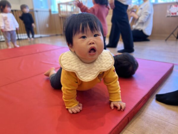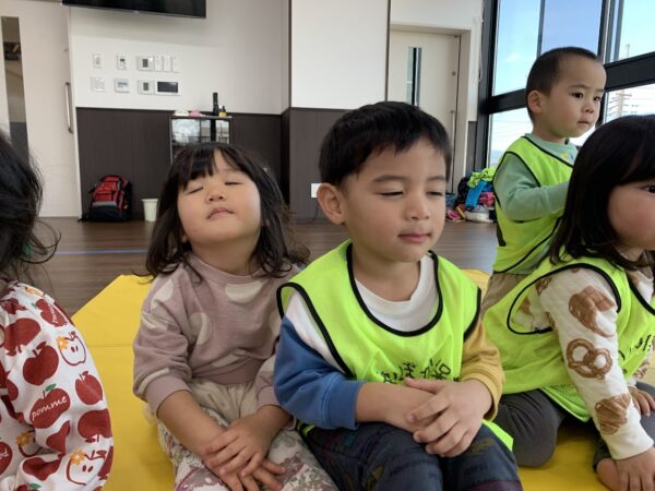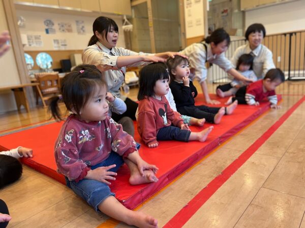 虹組さんは言葉のリズムと色を結び付けてマット移動を行いながら、リトミックを楽しみました!