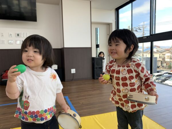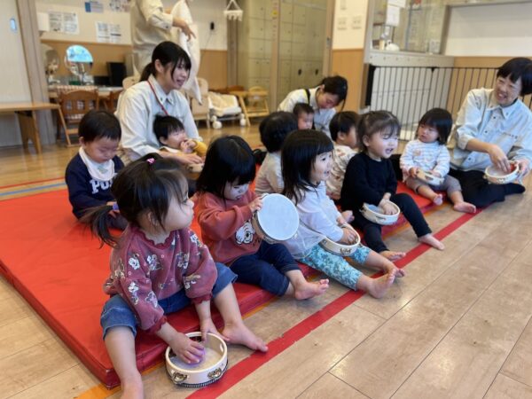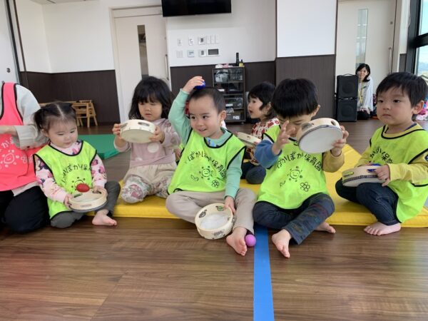 楽器活動ではタンブリンとシェイカーを使ってケーキ作りを行いました!