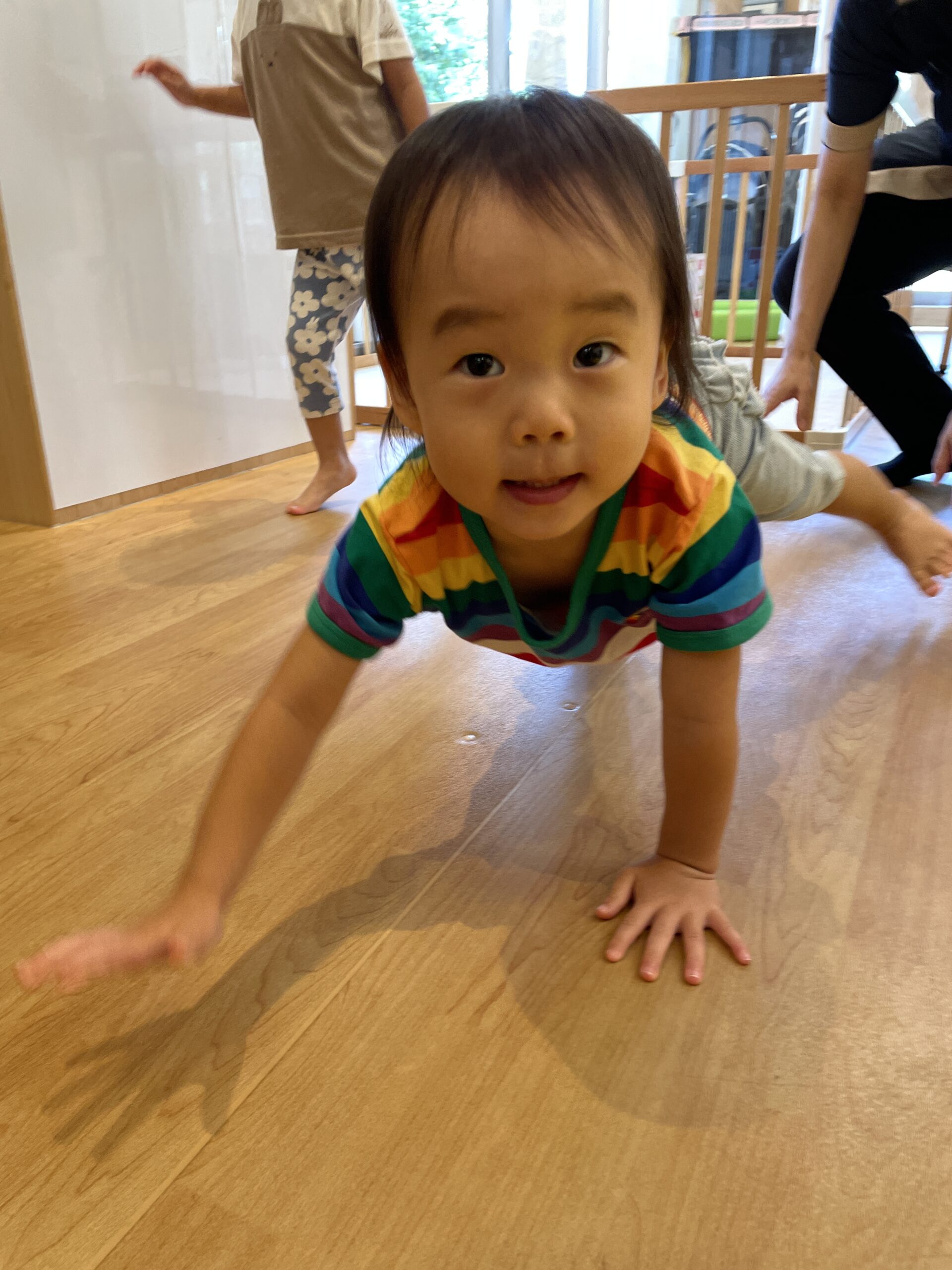 くまは高這い歩き、トンボは両手をいっぱいに広げて表現♪
