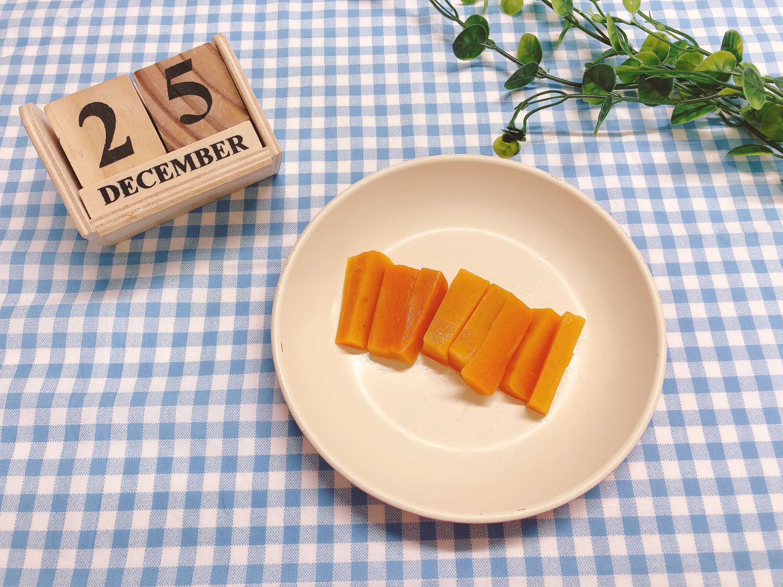 お散歩から帰ると給食室からカレーの香りがふわり。子どもたちは「いいにおーい!」と声を揃えて食卓へ。豚肉のカレー風味炒めはご飯と相性ぴったりで、ピッカリのお皿を次々に見せてくれました。白菜のマリネサラダも挑戦しながら口に運ぶ姿が印象的で、野菜の味わいをしっかり味わえていました。