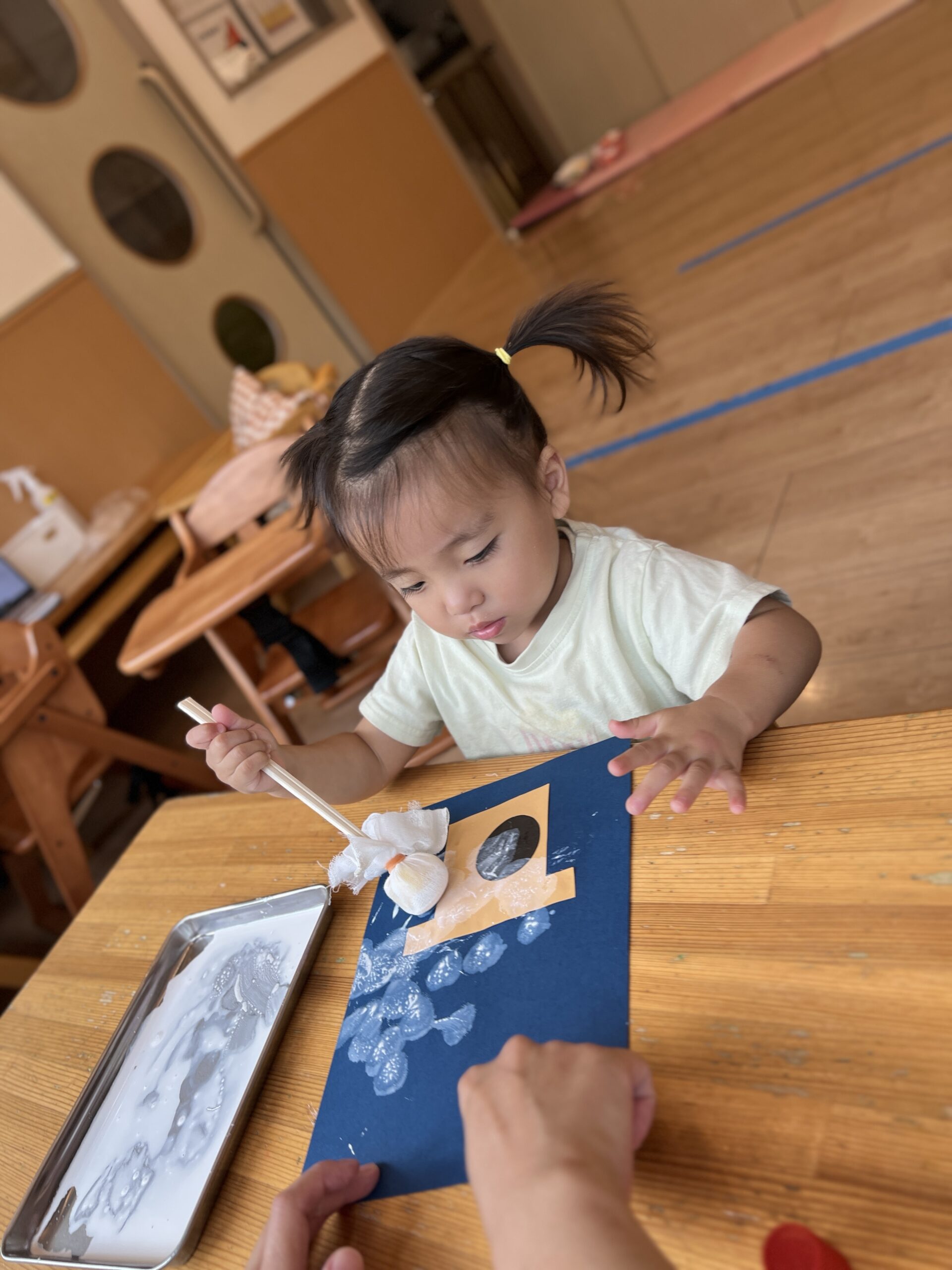 2歳児さんはのりを使って自分でのり貼りをしてみました!