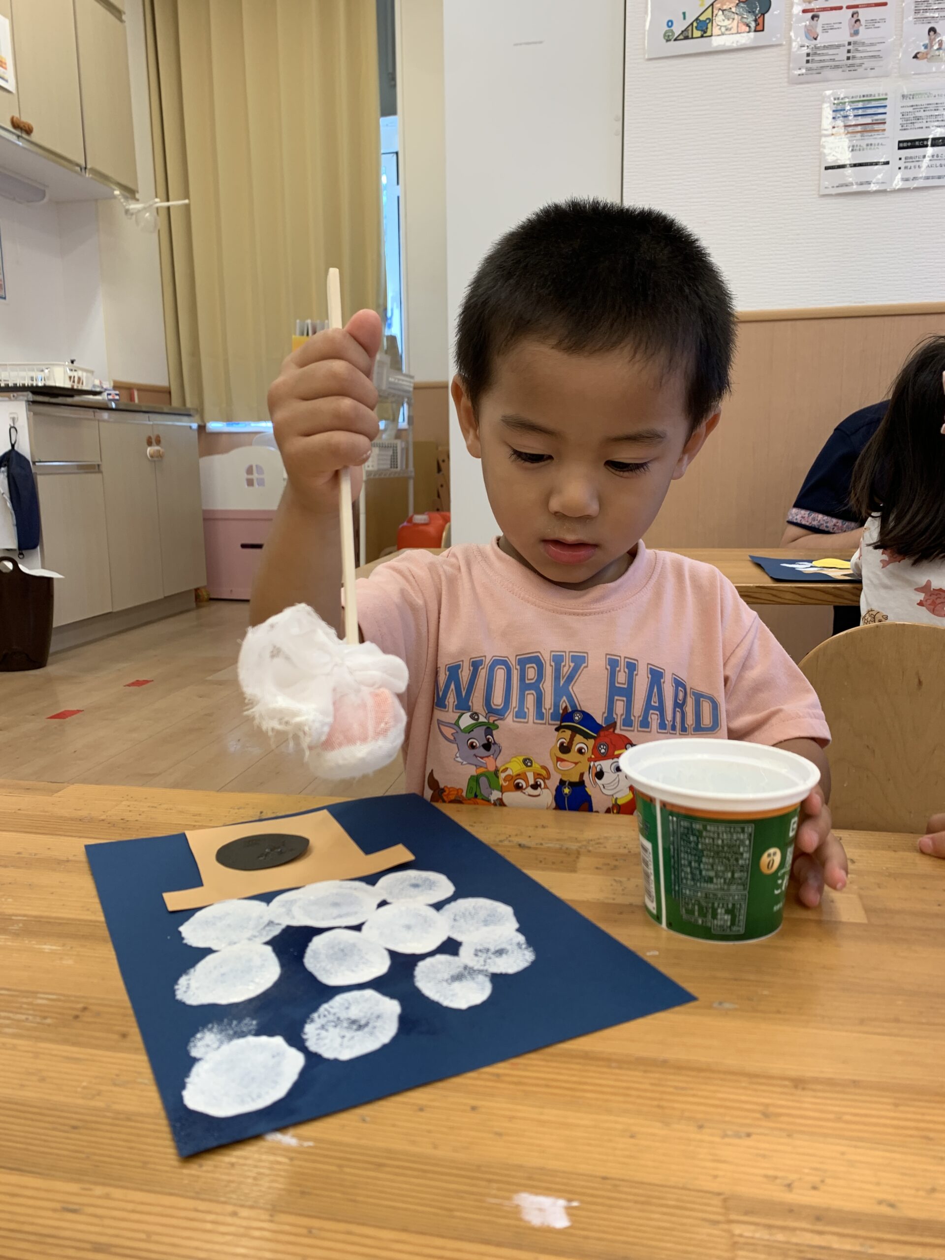 お月様の顔をシールで貼ってからお月様も貼ってみましたよ♬