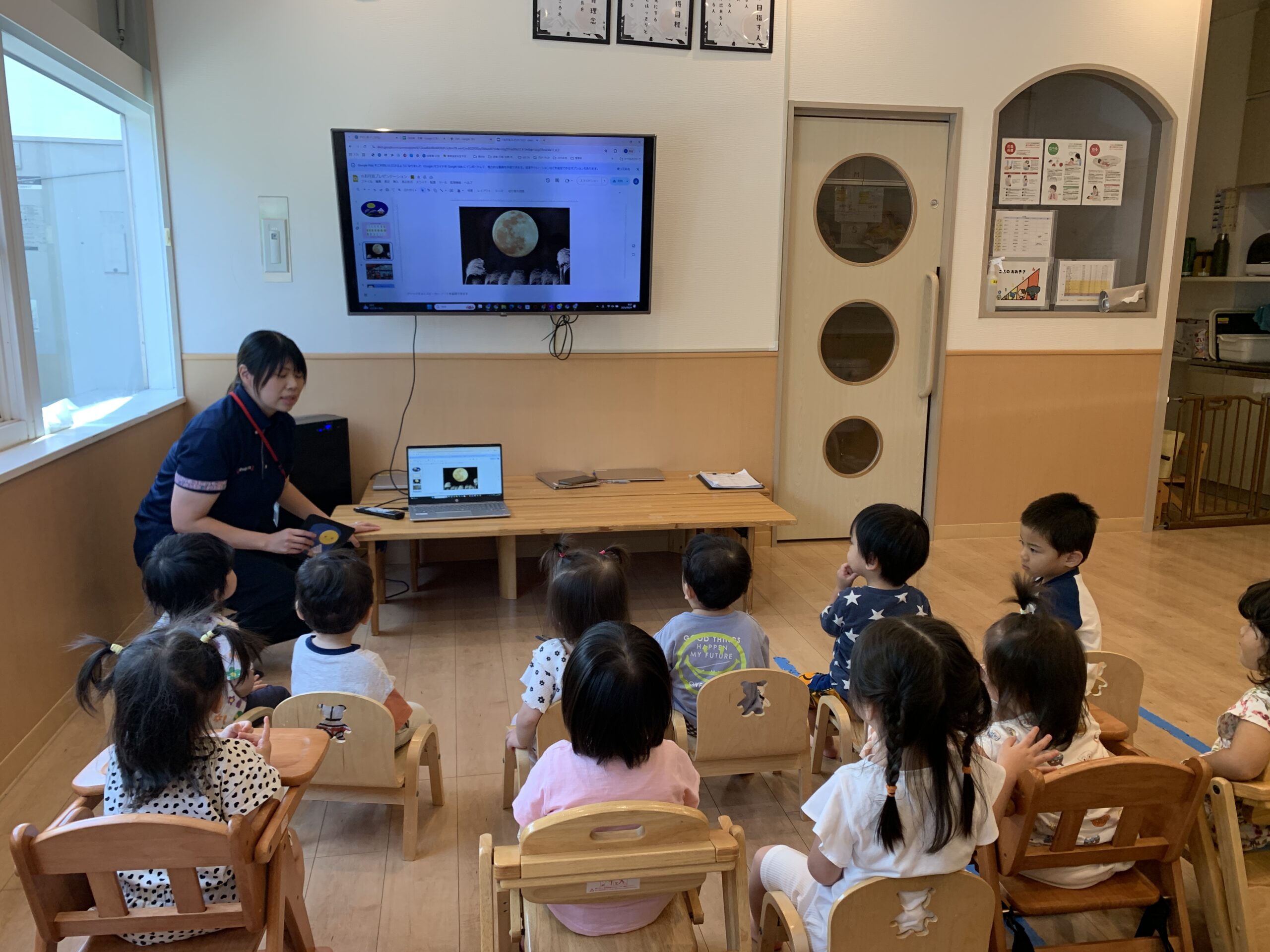 「お月様にはうさぎさんがいるんだよ」「お団子を供えるんだね」と、
