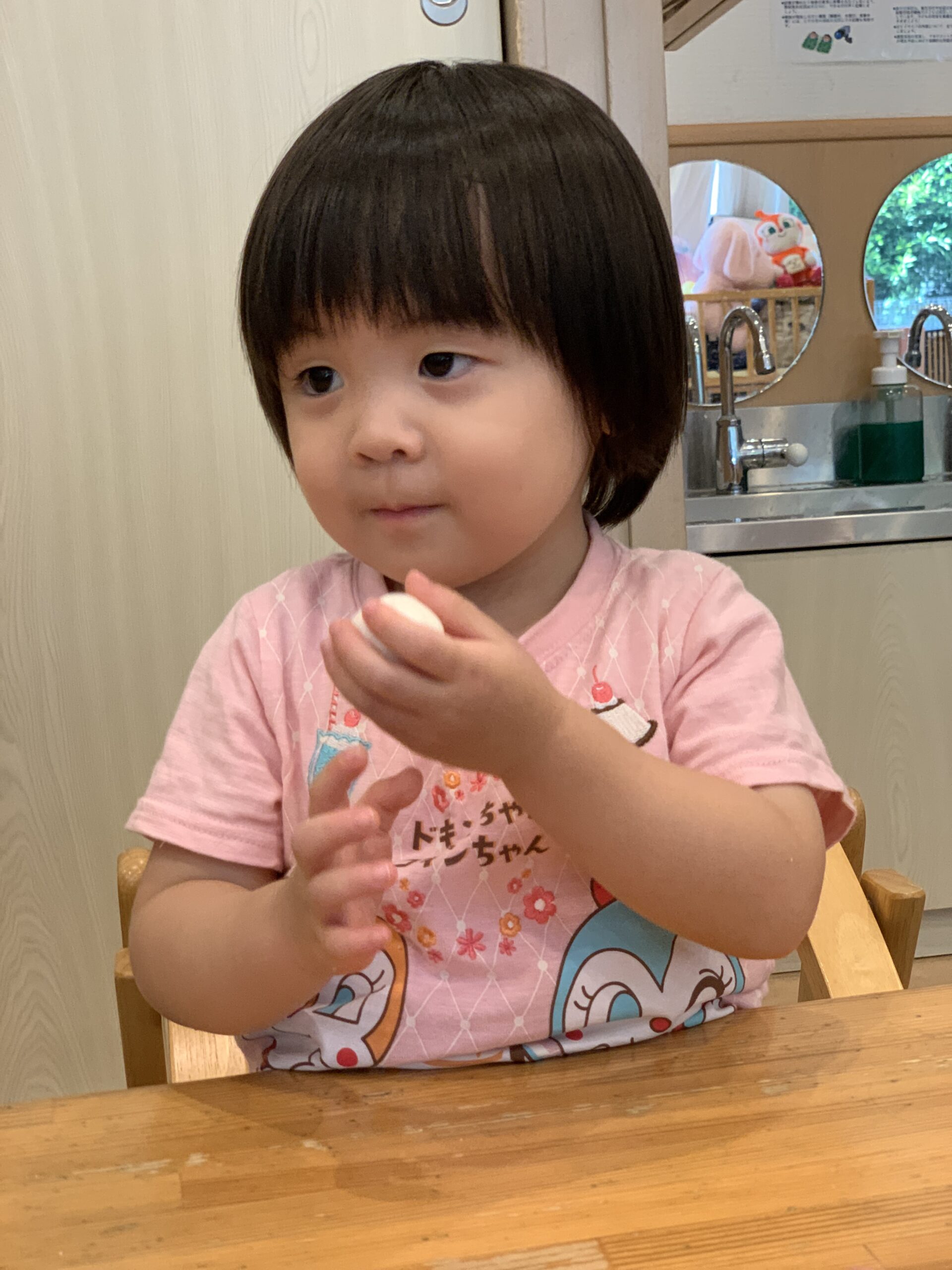 先生が「コロコロ丸めてみてね」と声をかけると、