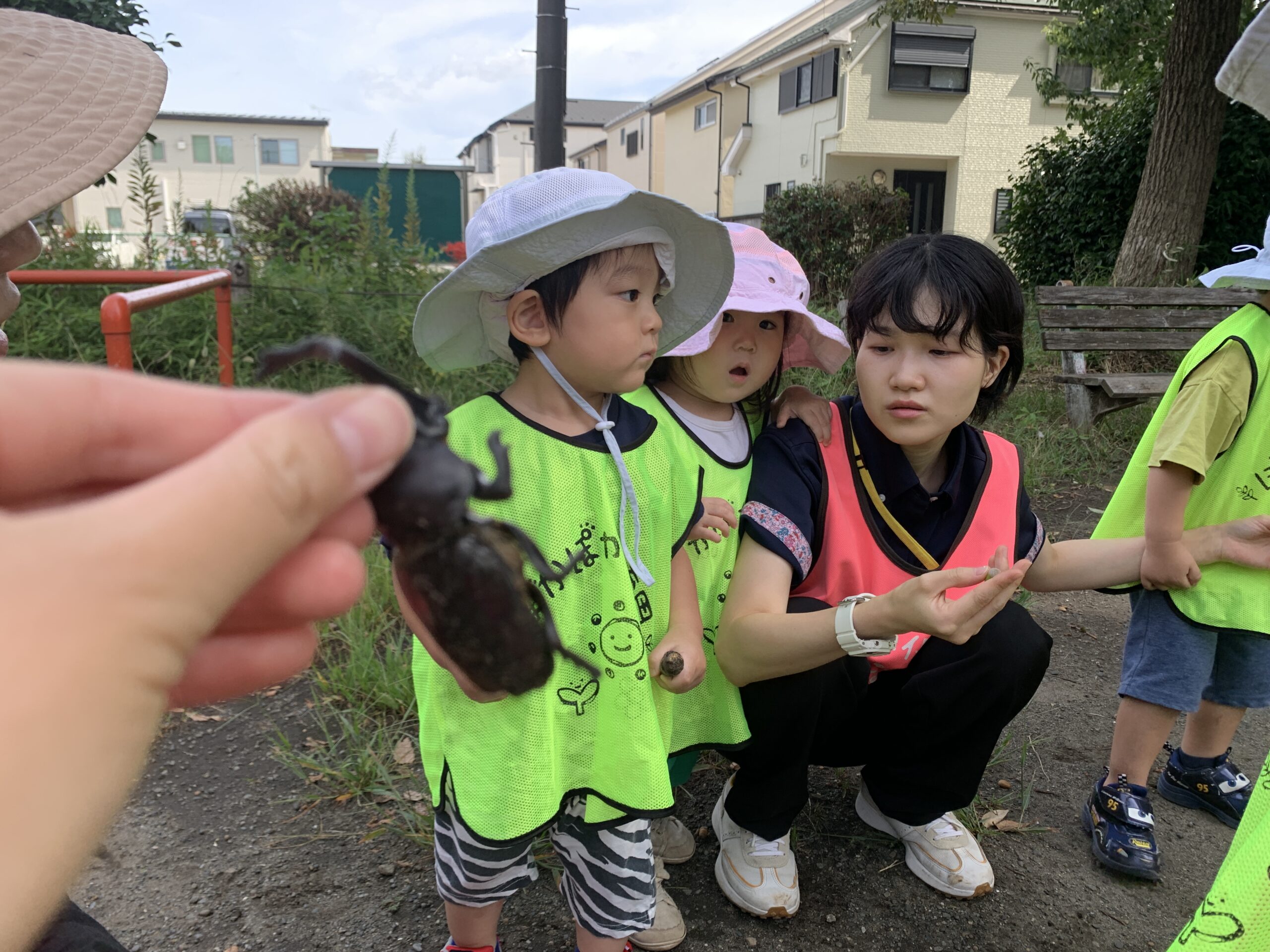 「先生!見て!カブトムシがいたよ!」と、一人の子どもが指さすと、