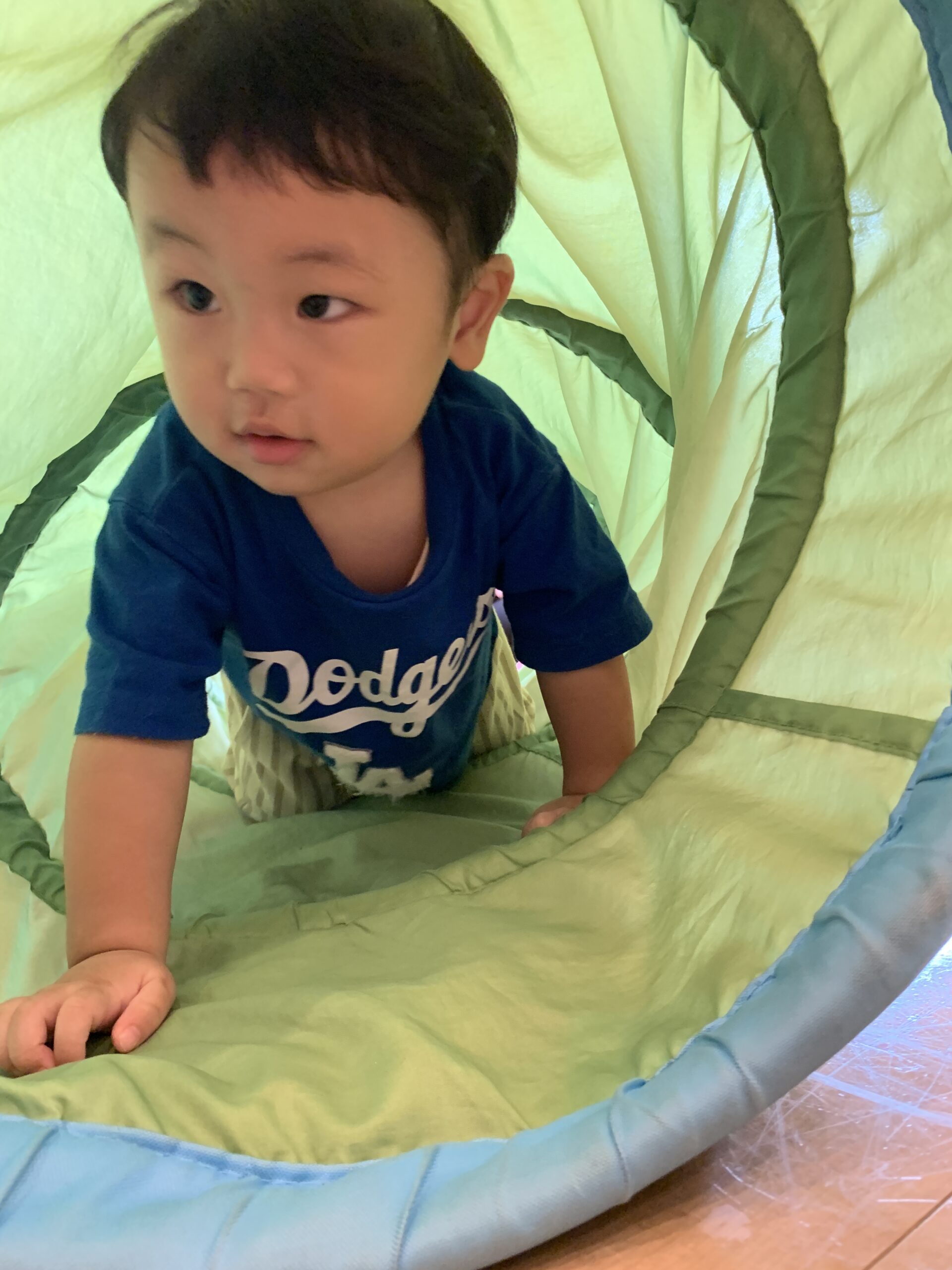 長いトンネルくぐりも、最初はお尻を高く上げてぎこちなかった子どもたち。