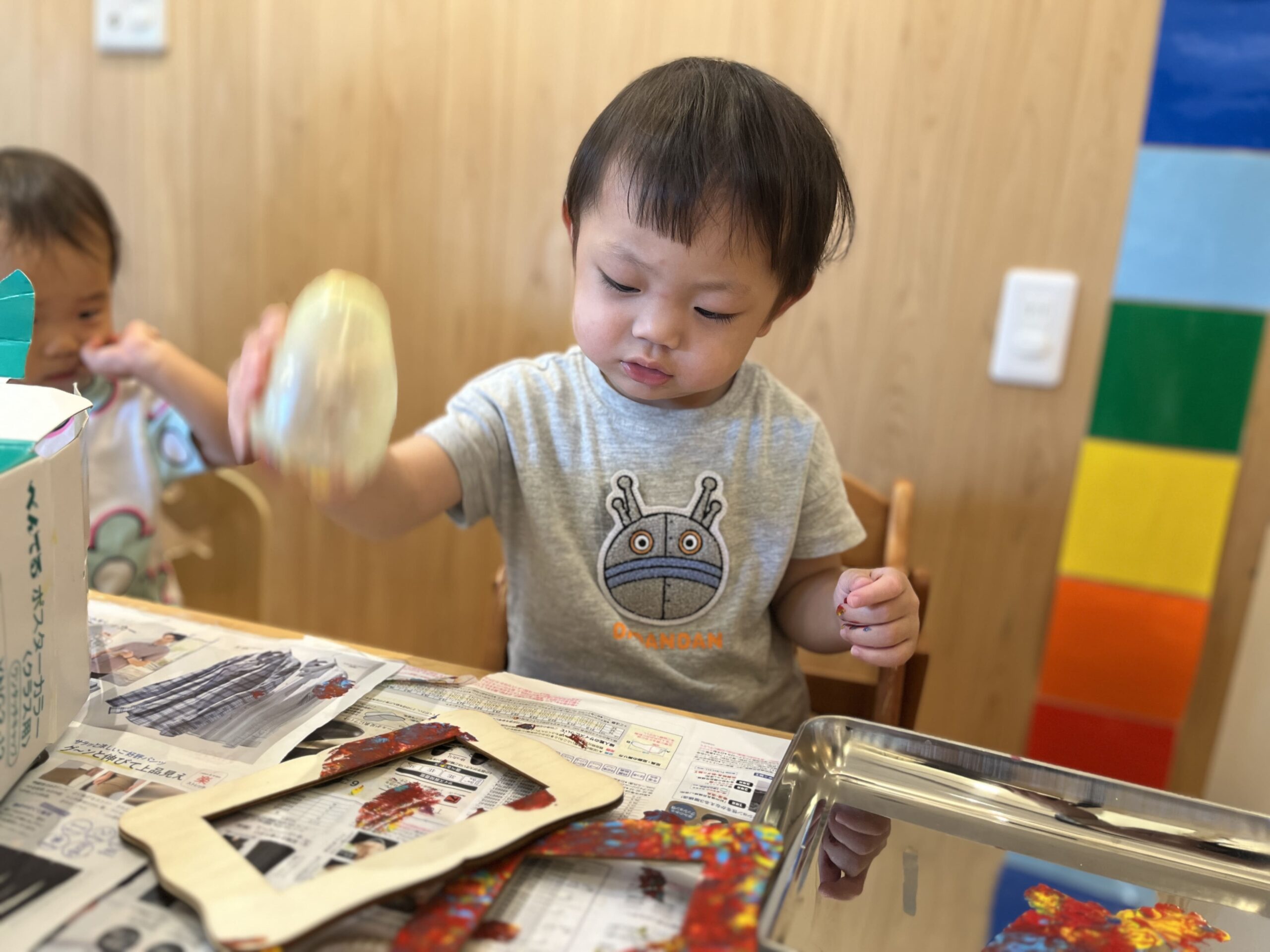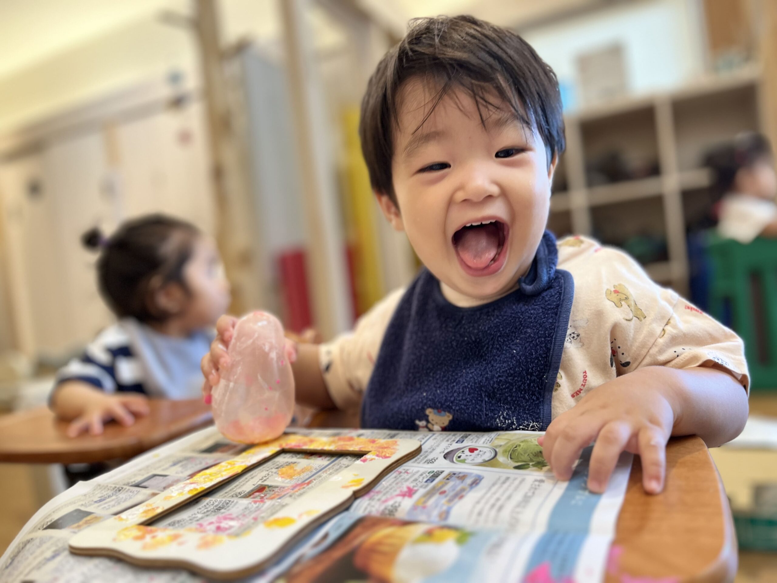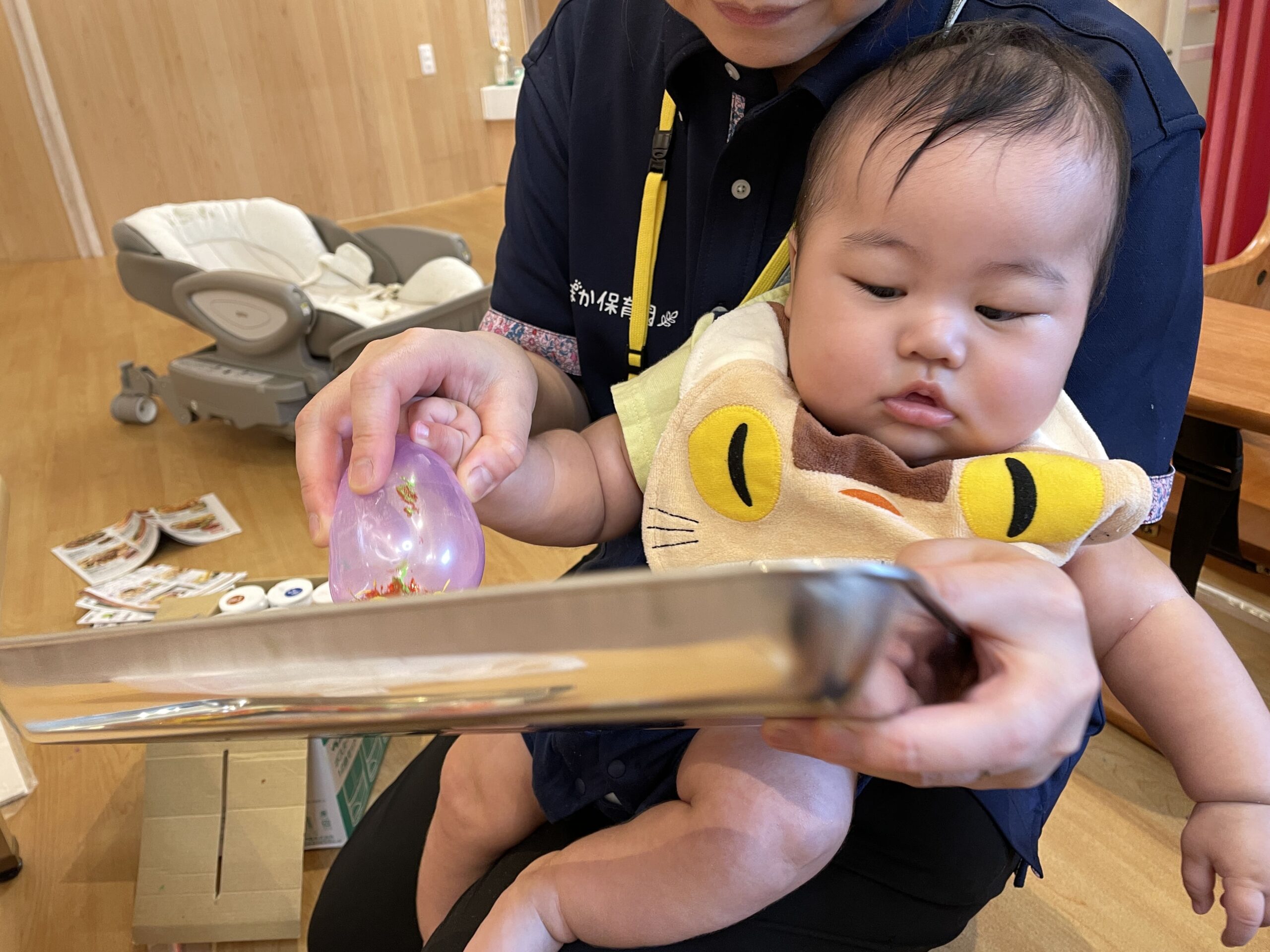 1歳児さんは、とても上手にシールを剥がし、自分たちで目と口に貼る事ができていました!