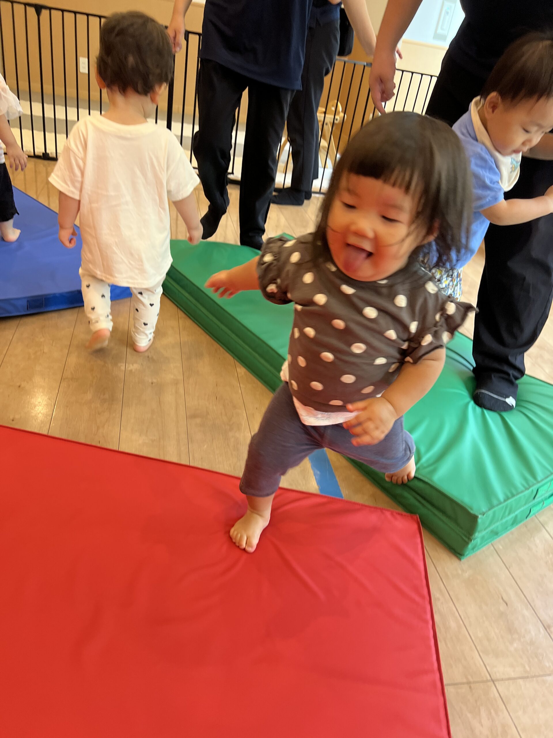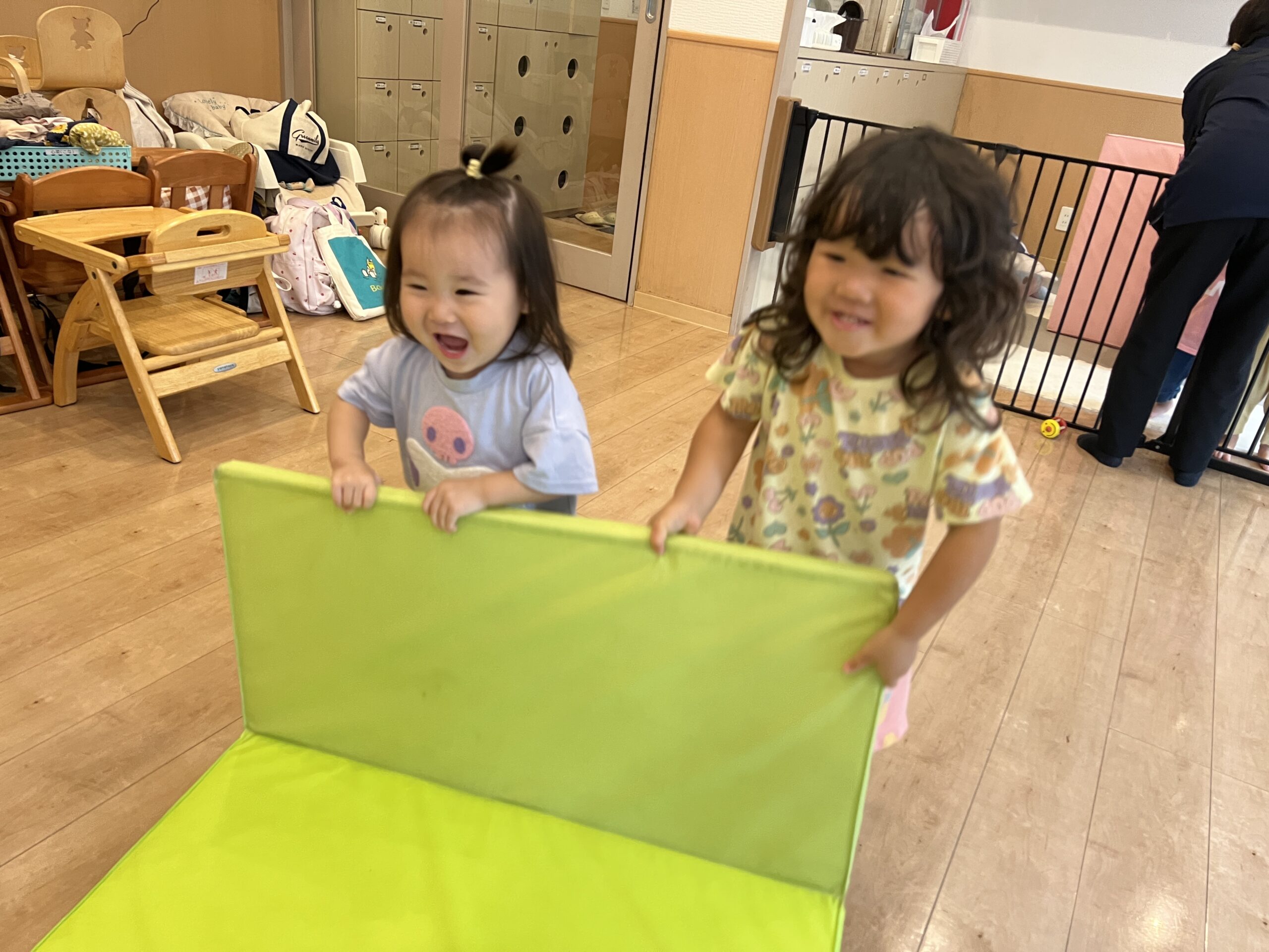 フカフカのマットを部屋いっぱいに敷き詰めると、子どもたちは興味津々!