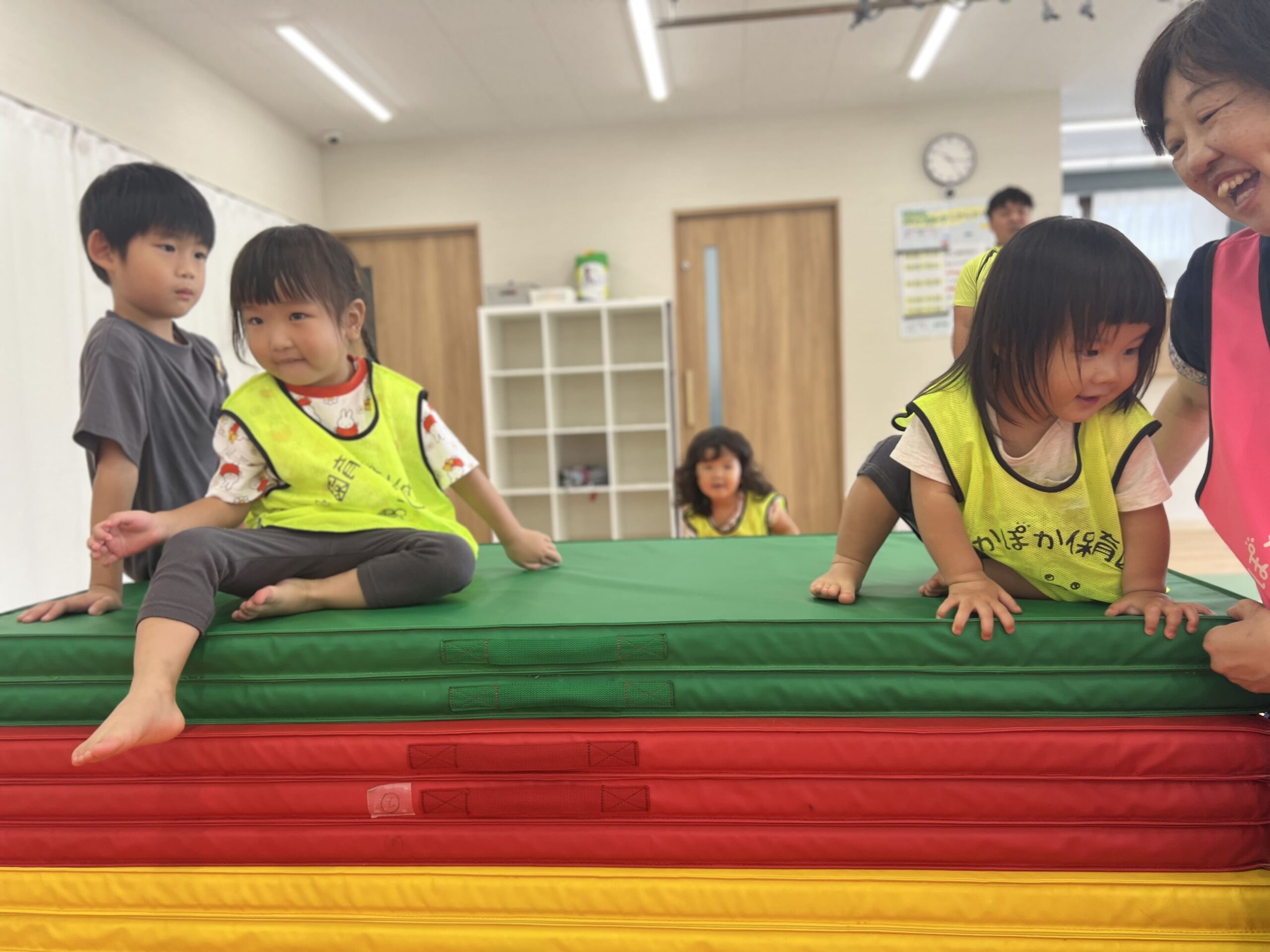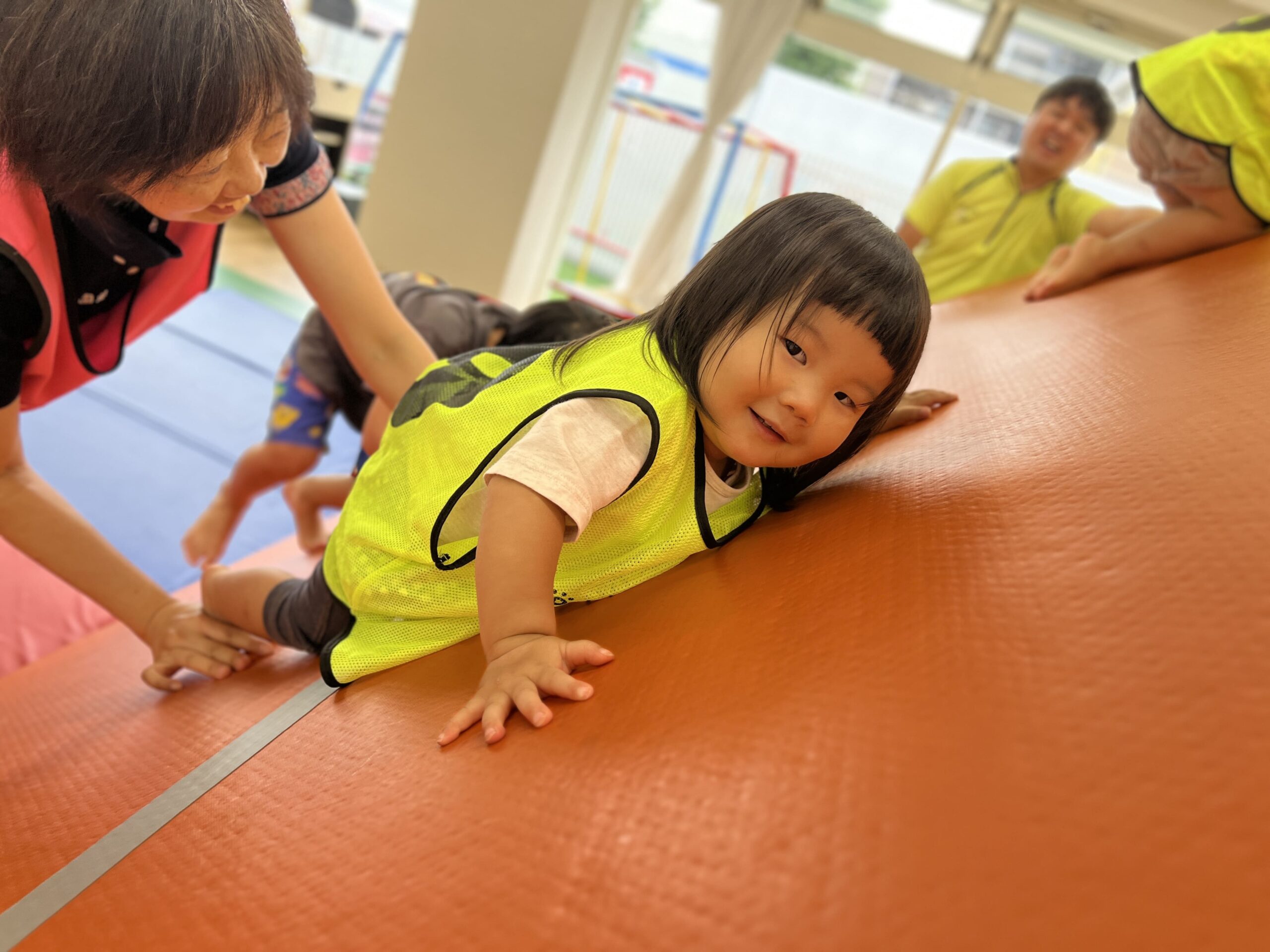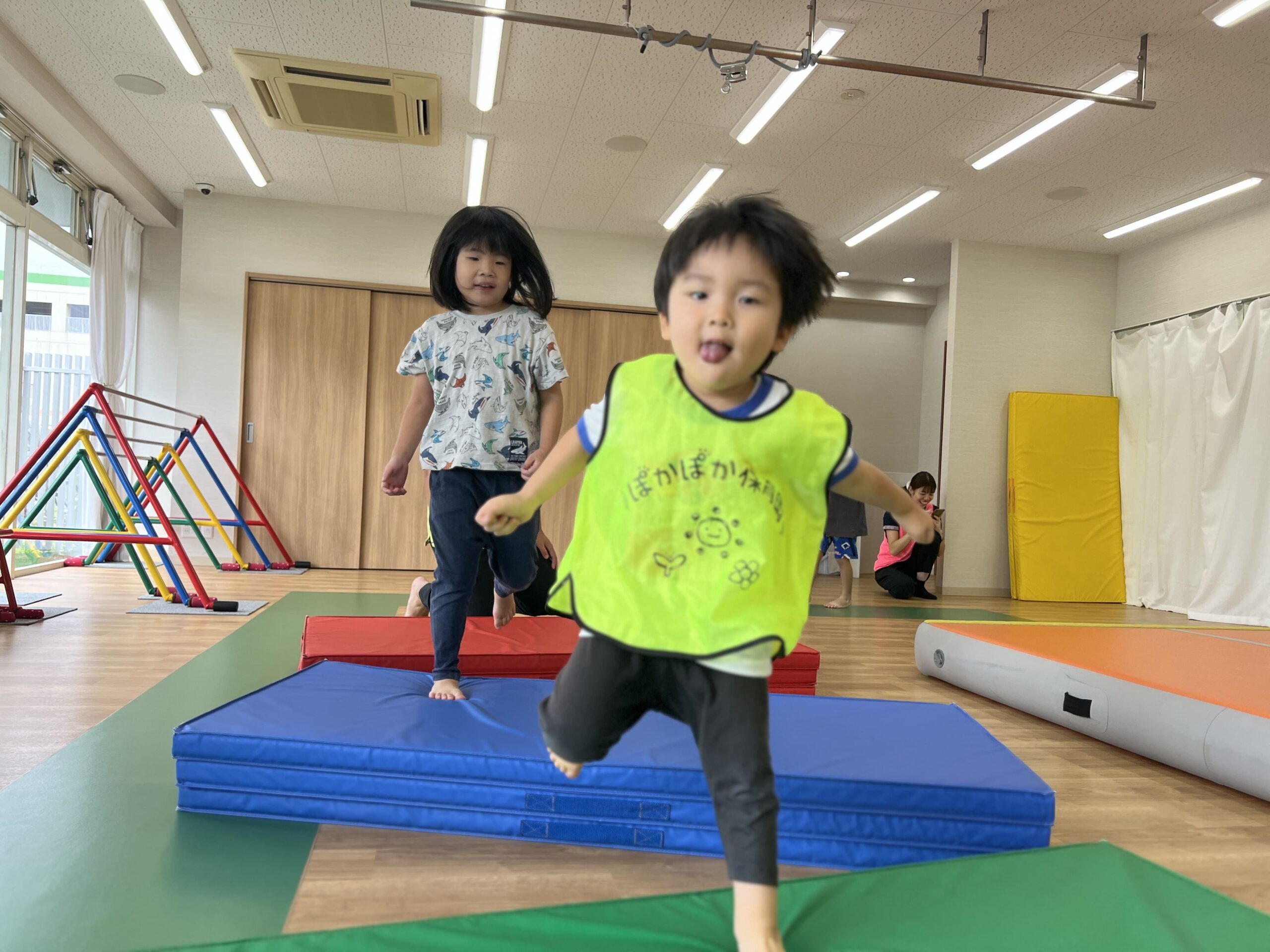 たくさんのマットや運動遊具を見て、早く遊びたい気持ちが伝わってきます。