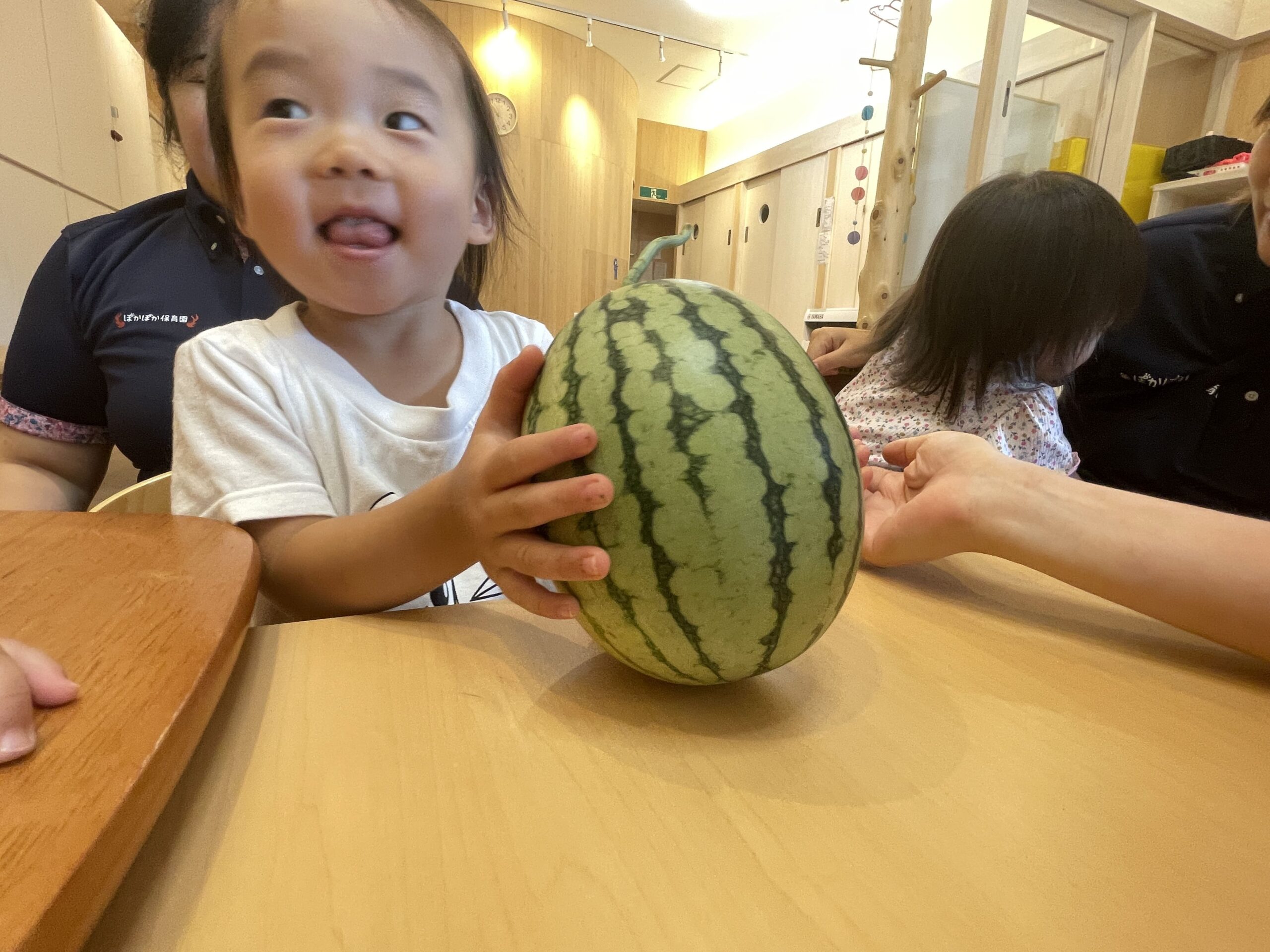 みんな目を輝かせ「スイカだ!!」と大喜び。