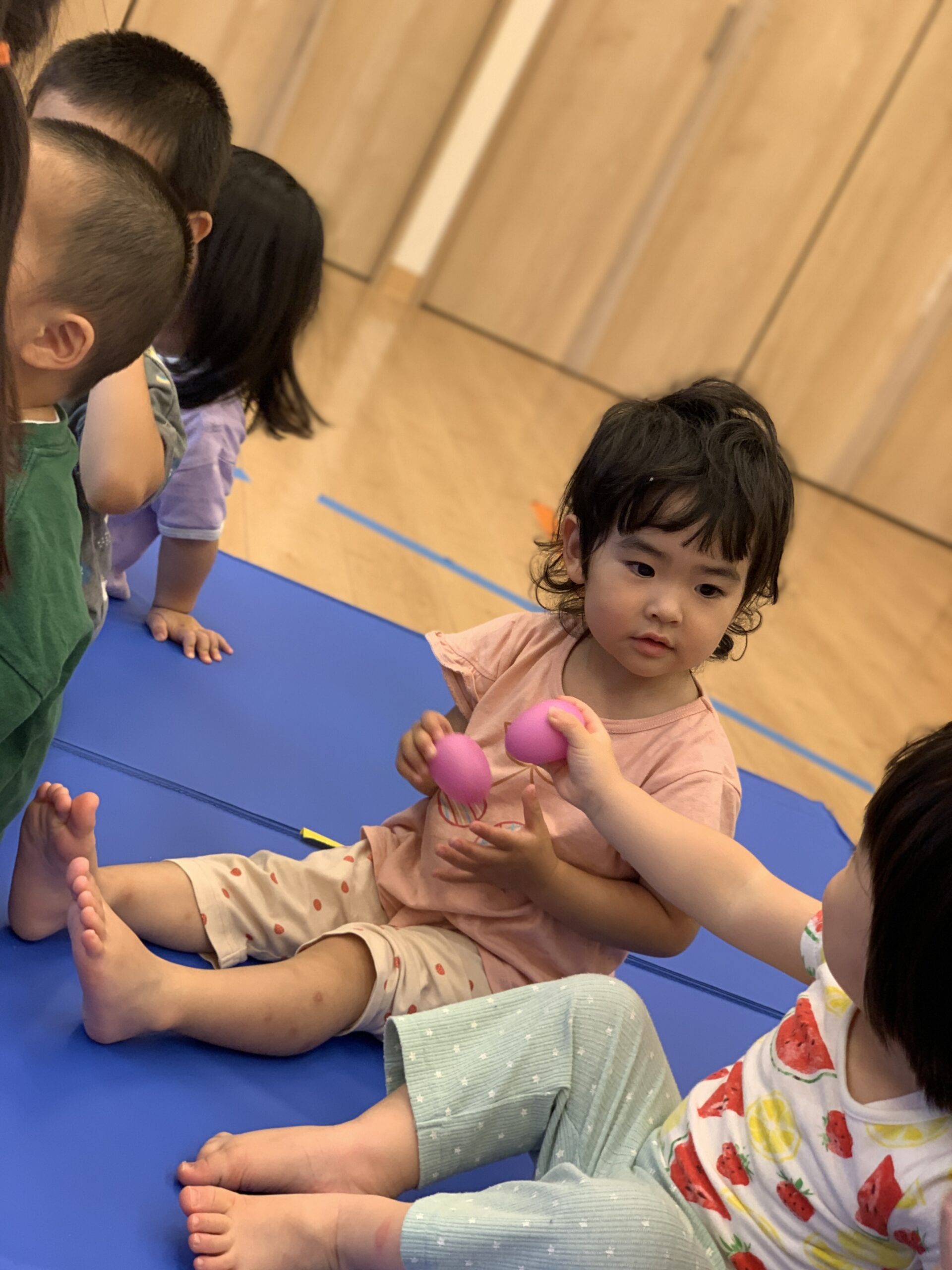 どちらのクラスも、とても集中して取り組んでいた今日の音楽あそびでした。