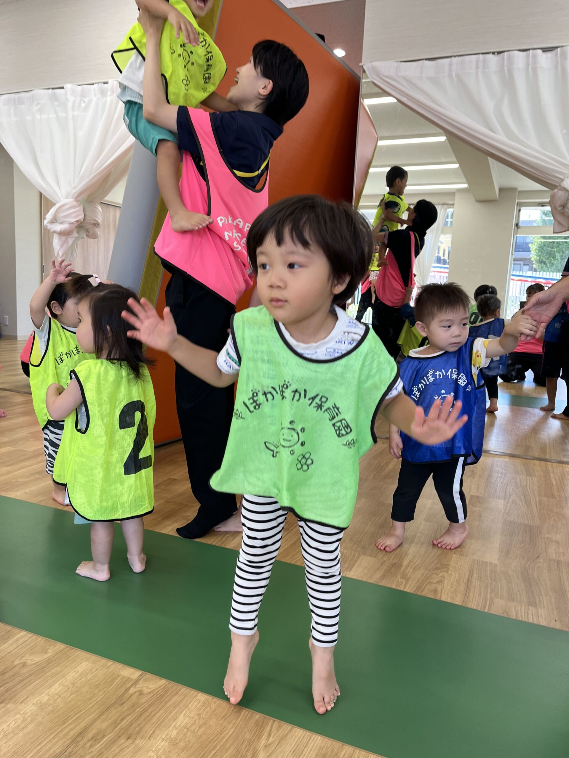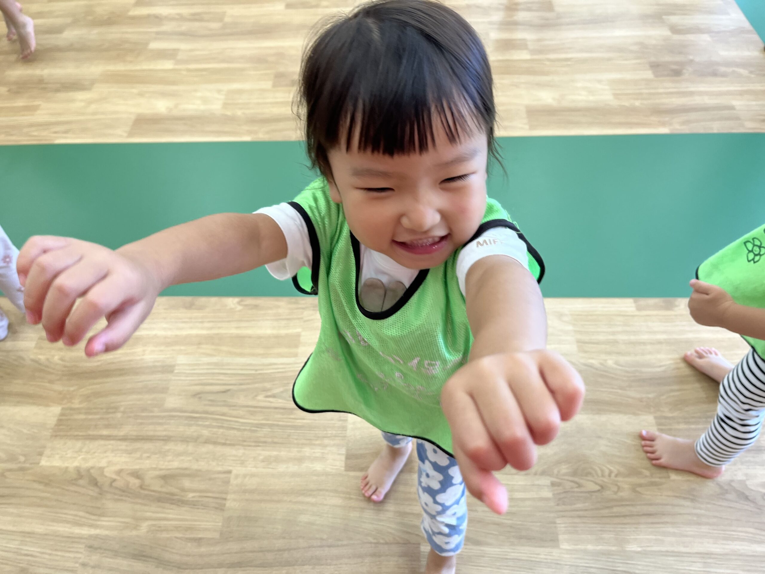 2歳児は教室で元気いっぱいにダンスに取り組み、笑顔があふれていました。