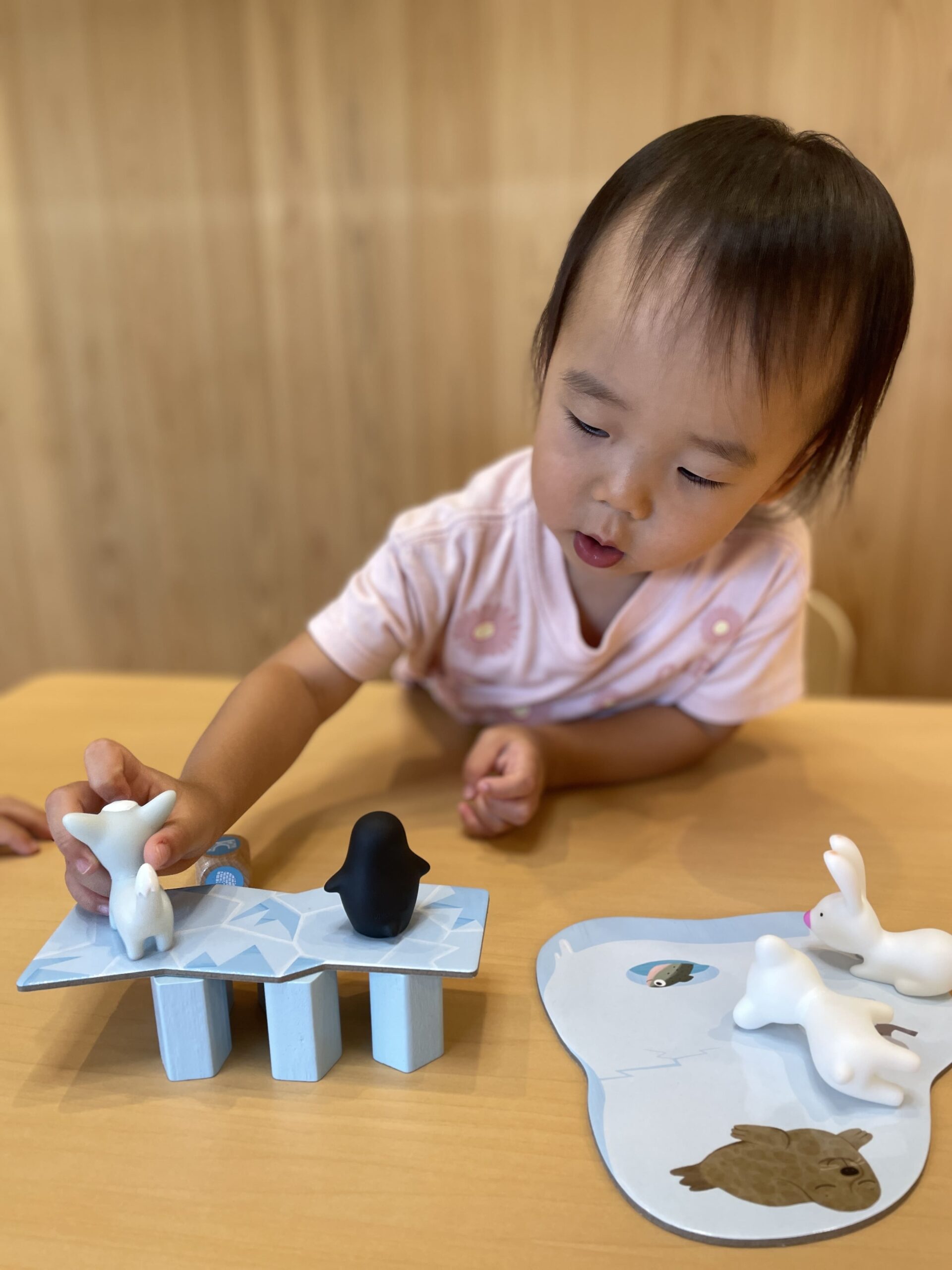 ゾウさん積み木では、いつもより高く積めたことで自信いっぱいに拍手を送る姿が印象的でした♡バランスをとる難しさを乗り越えた喜びが、そのまま自己肯定感につながっています。
