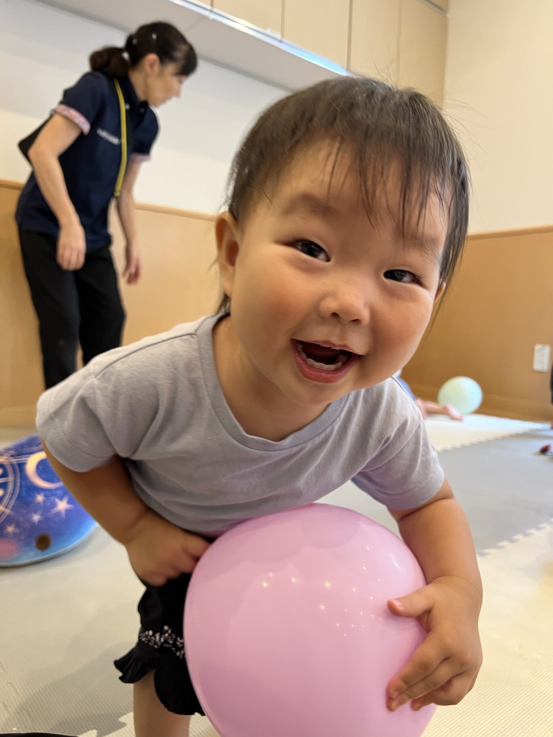 保育者と「タッチ!」とハイタッチして大喜び☆