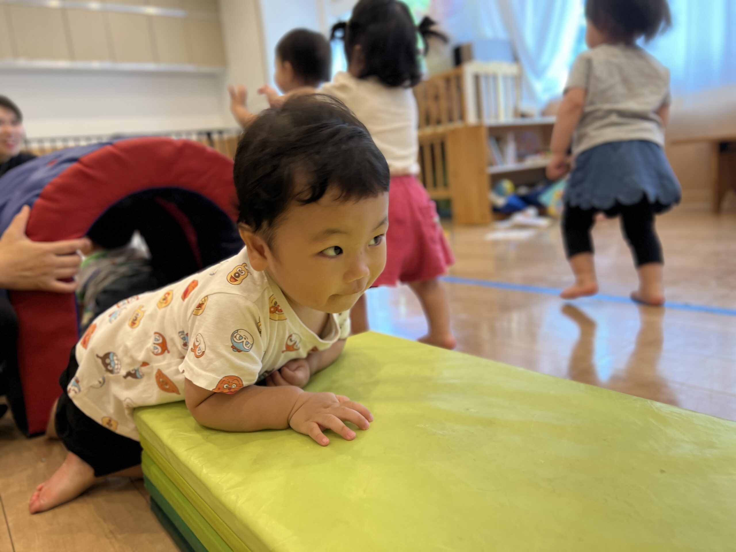 大きなマットの段差を「よいしょ!」と声に出しながら登り降りしたり、