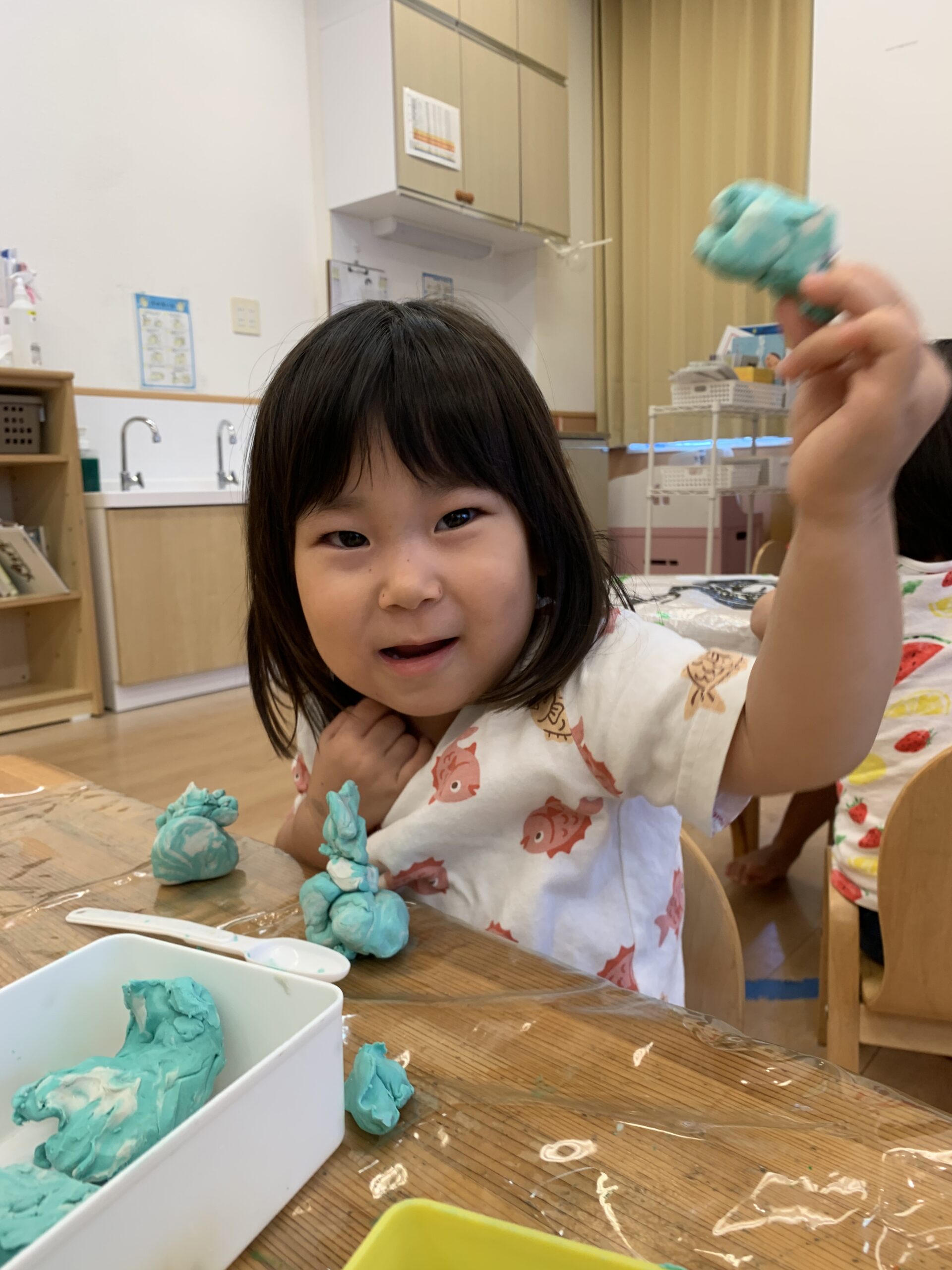 友達や保育者と見せ合いながら、楽しい声が弾けていました。