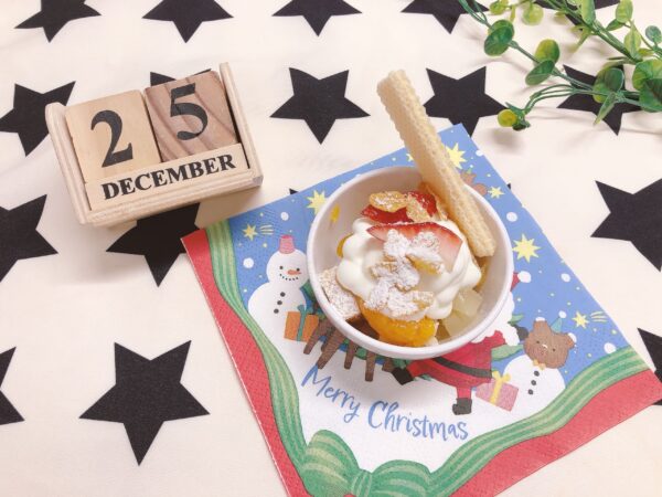 下味ににんにく効かせ、皮はパリッと身はジューシーに焼き上げました。骨なしで提供することで、子どもも食べやすく、「お肉おいしい!」と大人気。クリスマスの特別感を存分に味わってもらえました。