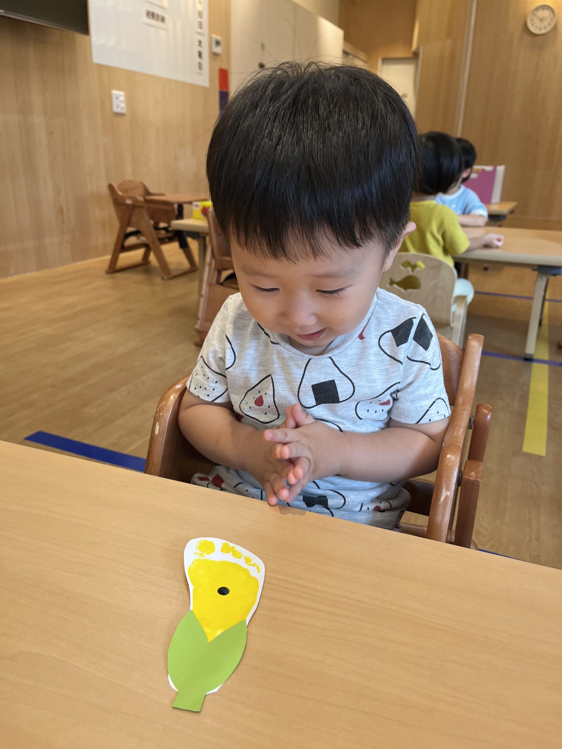 トウモロコシとナスは0歳児さん同様、足型を取りました。