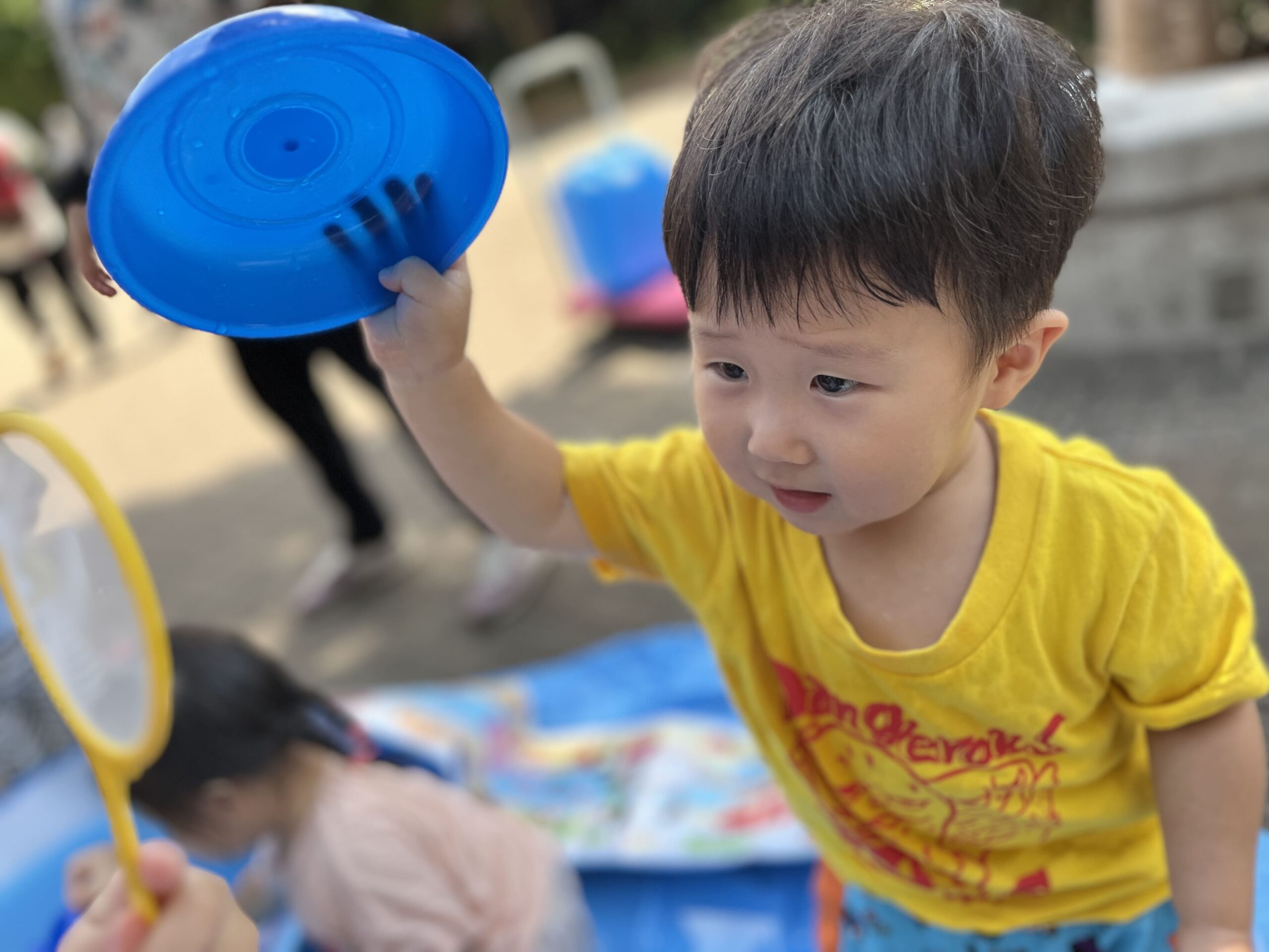 2歳児さんはお魚すくいにも挑戦しました!しかしお魚を集めるよりもポイが気に入ったようでメガネのようにしてお友だちを覗いてにこにこしていて微笑ましかったです!