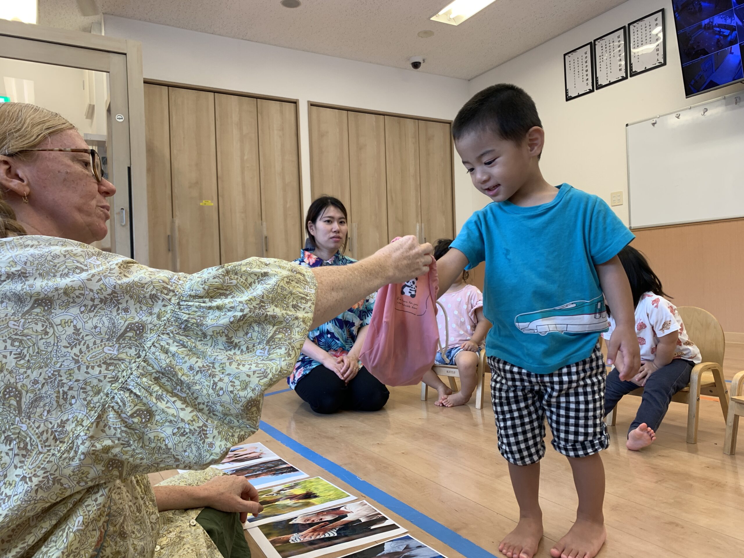 音楽遊びでたくさん演奏した後は、英語遊びの時間です!