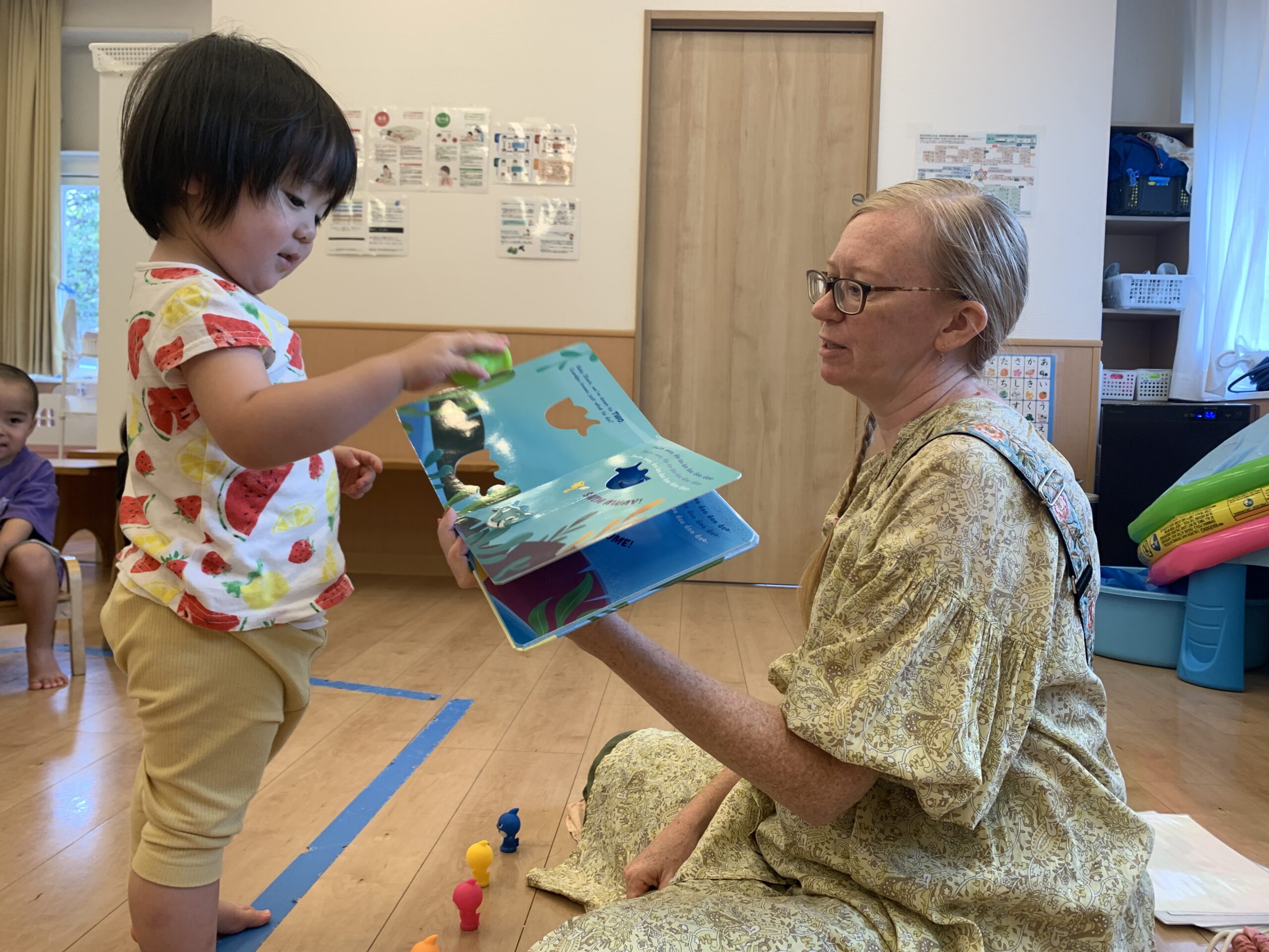 英語の先生が登場すると、子どもたちは「ハロー!」と「元気」いっぱいにご挨拶。