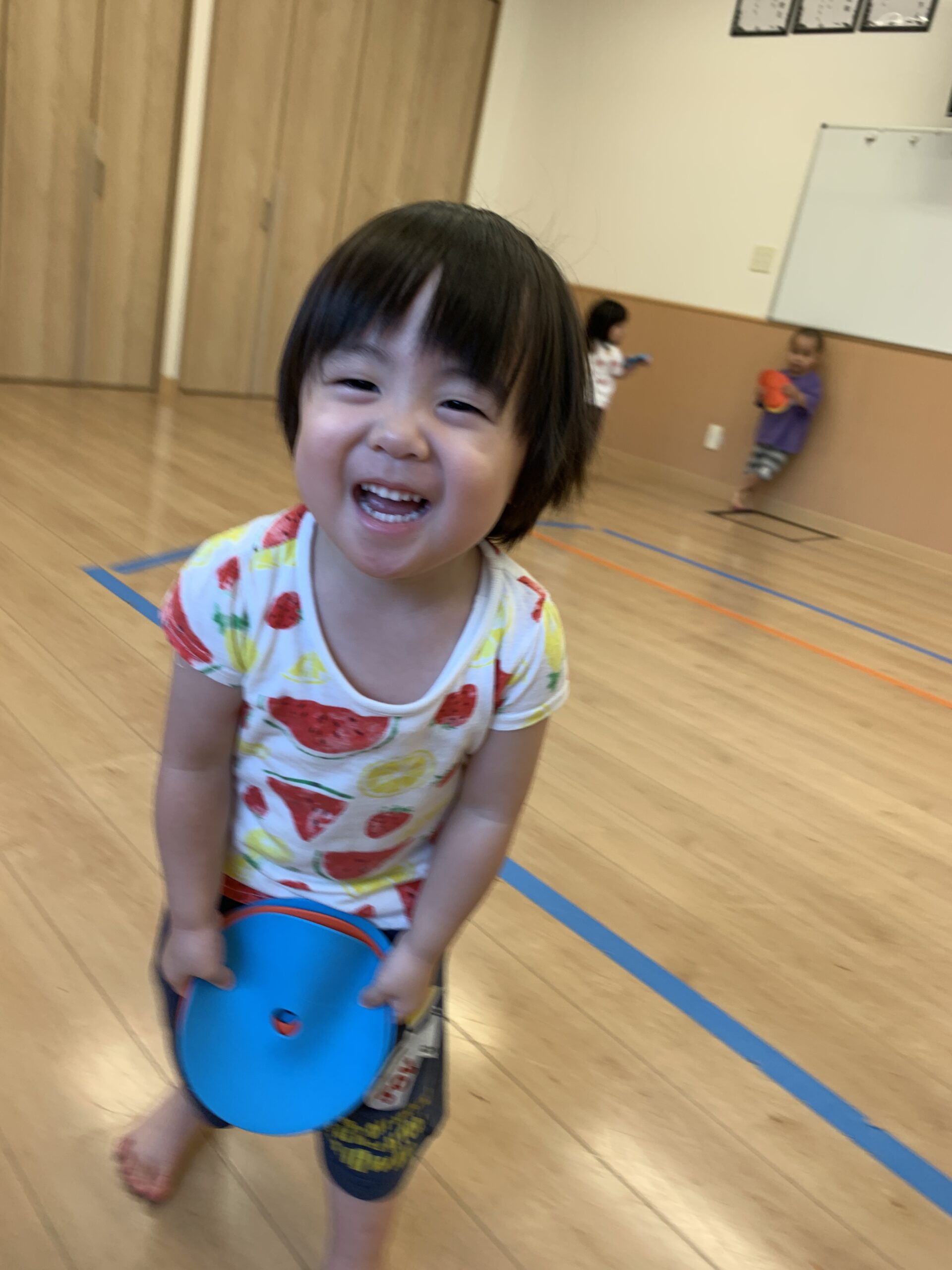 室内で音楽遊びと英語遊びを楽しみ、たくさんの「笑顔」と「元気」を分かち合いましたよ。