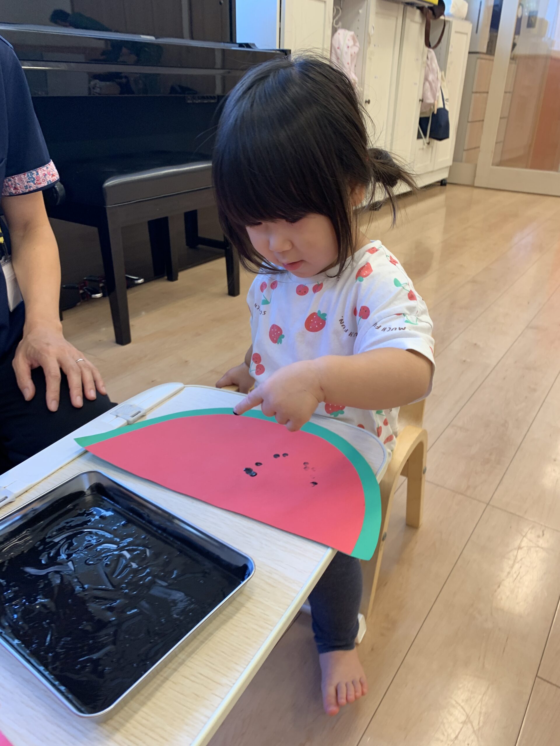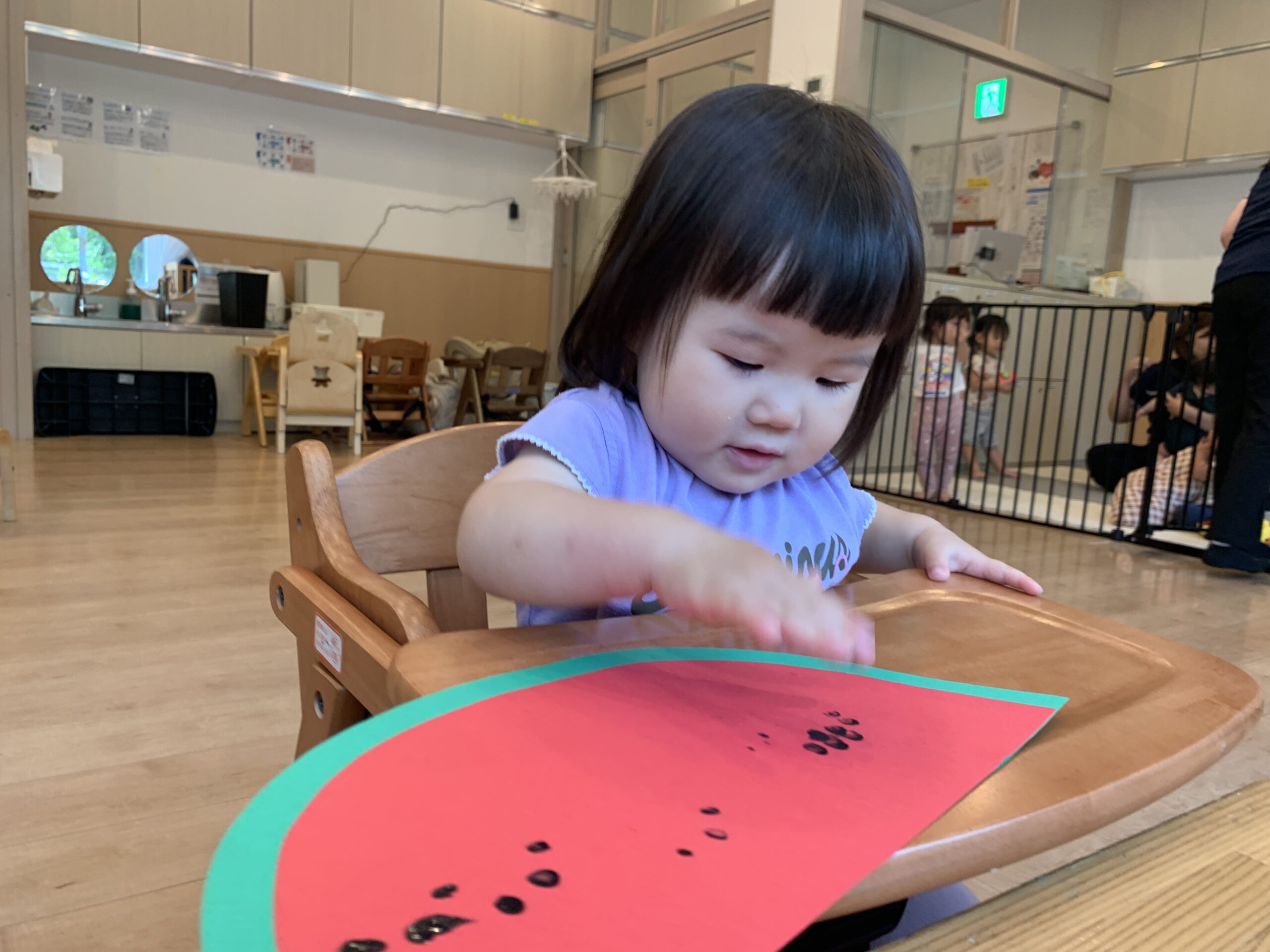 小さい子達は黒いシールを使ってすいかの種みたいに貼りました!