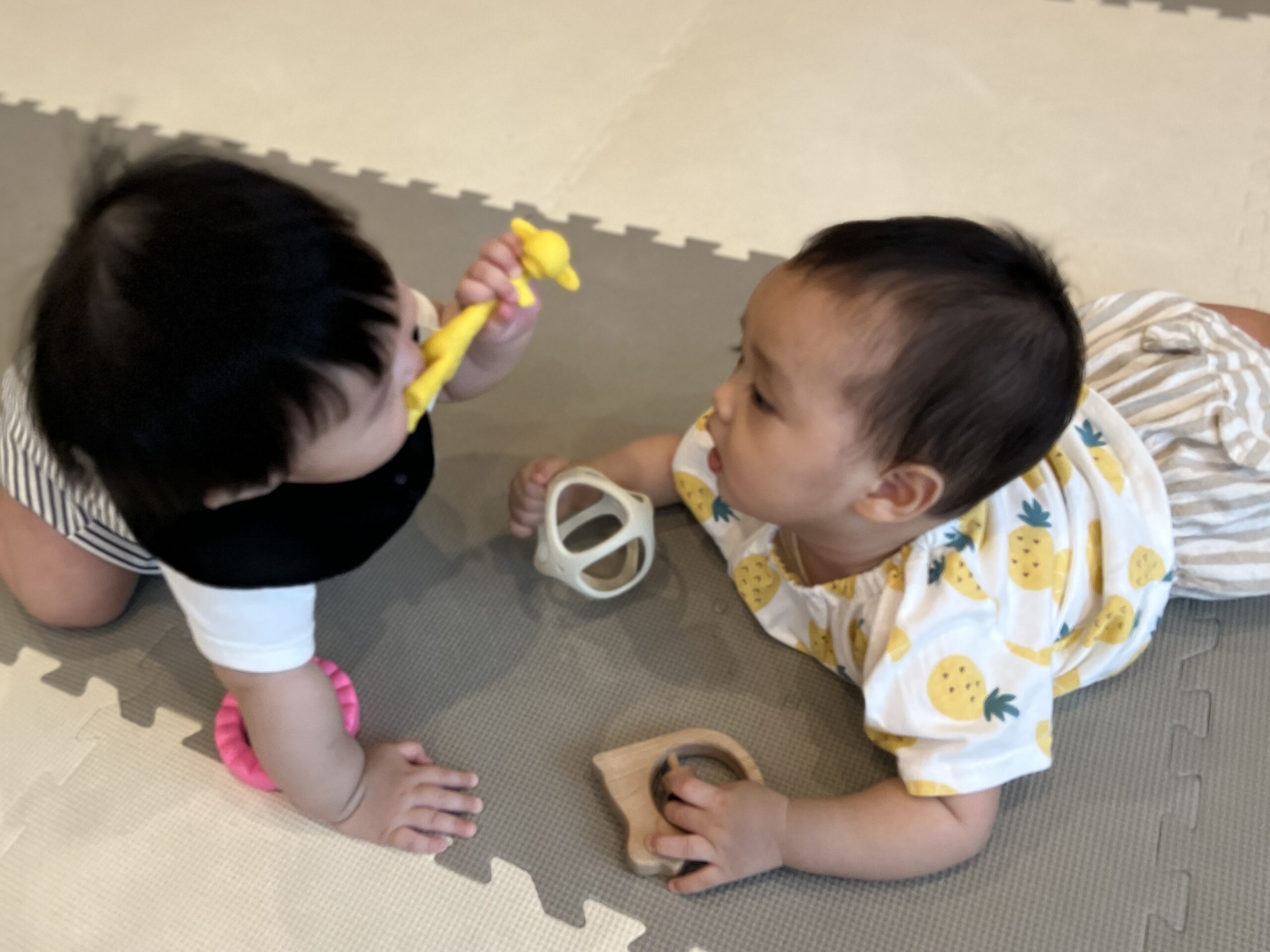 うつぶせができるようになったばかりの赤ちゃんたちは、