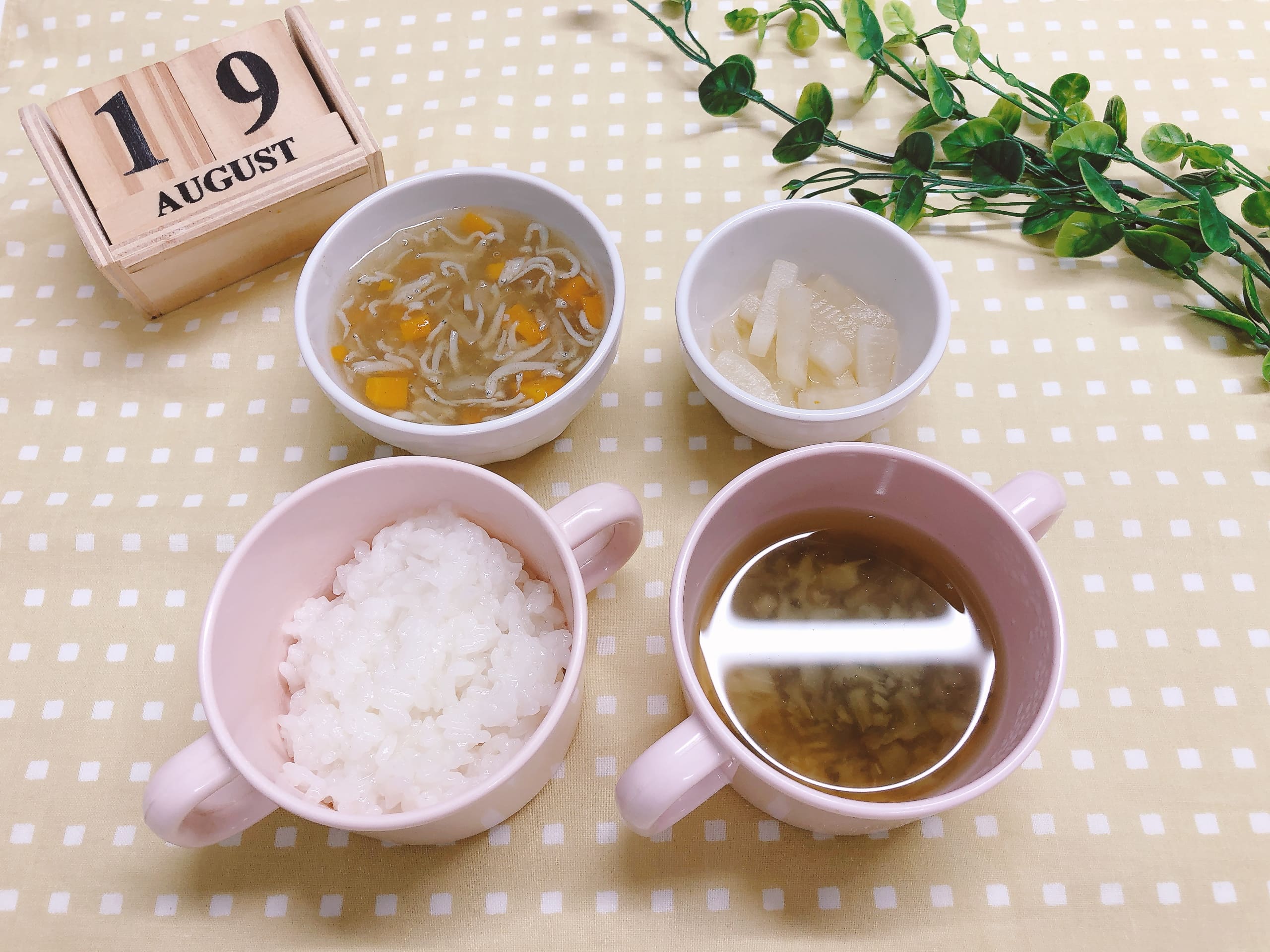 サイドには栄養豊富なわかめスープ。やわらかいわかめと刻みネギがたっぷり入っており、だしの旨みで優しい味わいです。夏場の水分補給と同時にミネラルもしっかり摂れる一品になりました。