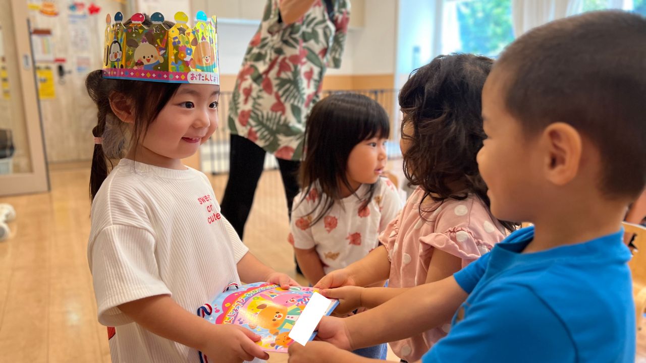 先生たちからのお誕生日カードは、仲良しのお友だちから手渡し。