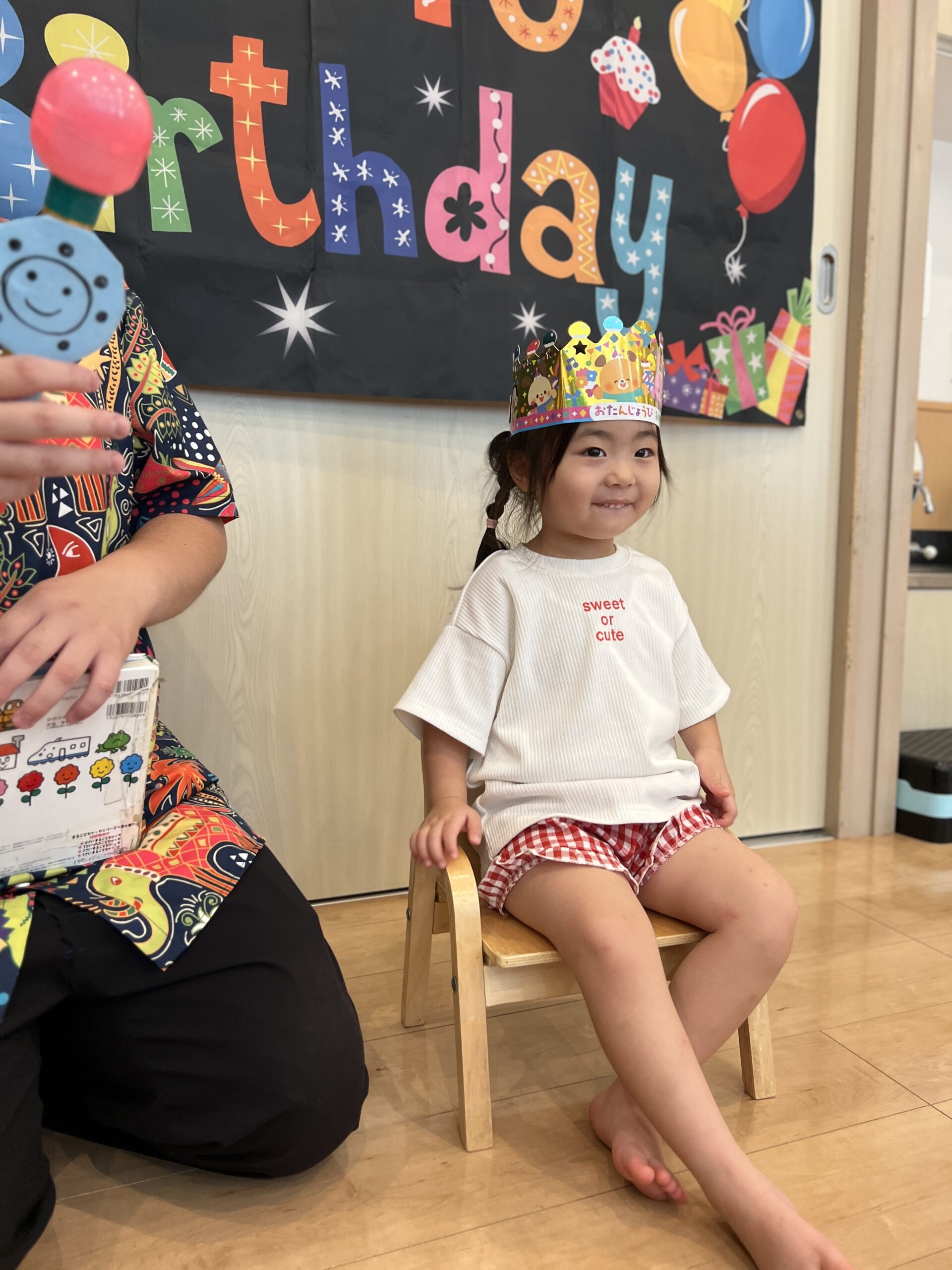 8月生まれのお友だちの登場に、みんなで心を合わせて拍手「おめでとう!」