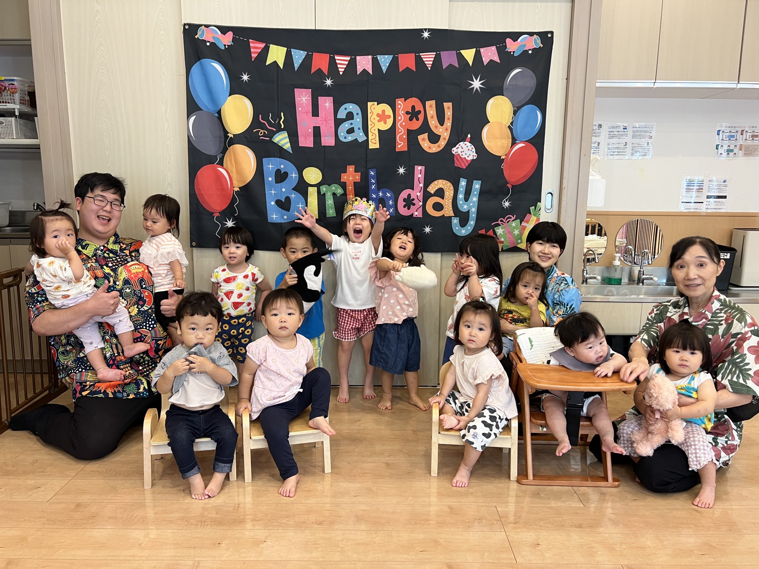 「おめでとう!」の声が響く中、みんなで大きくなったことをお祝いしました。