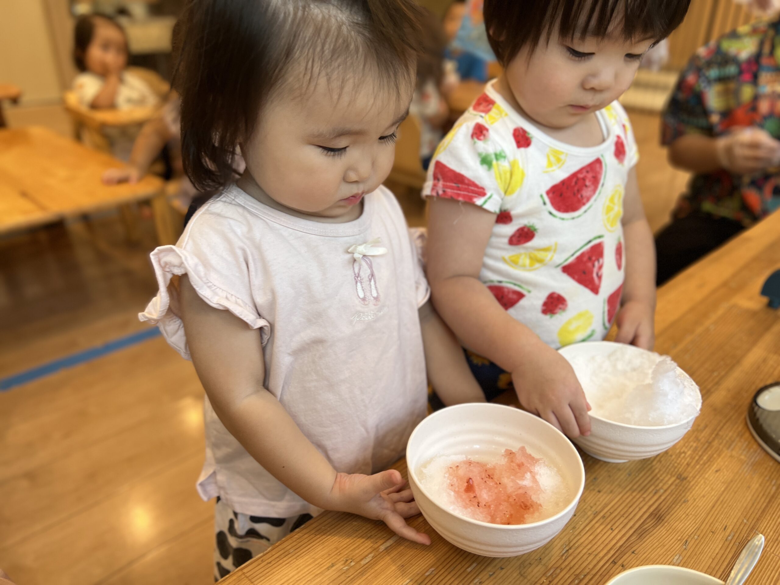 明日も子どもたちが元気に過ごし、冷たいかき氷のように爽やかな笑顔に出会えますように!
