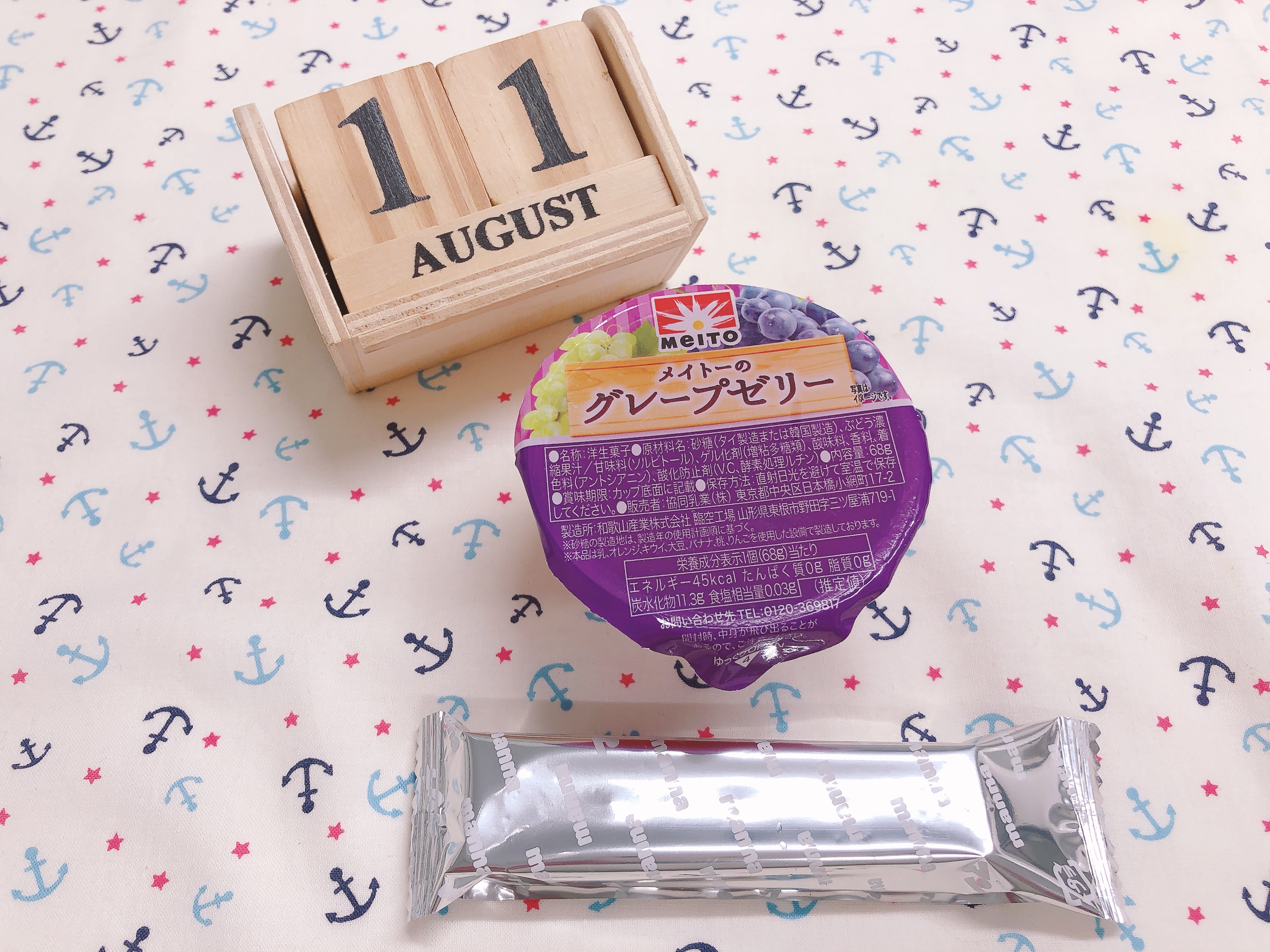 おやつの時間は、冷たいグレープゼリーとサクサクのウエハースでちょっと一息。