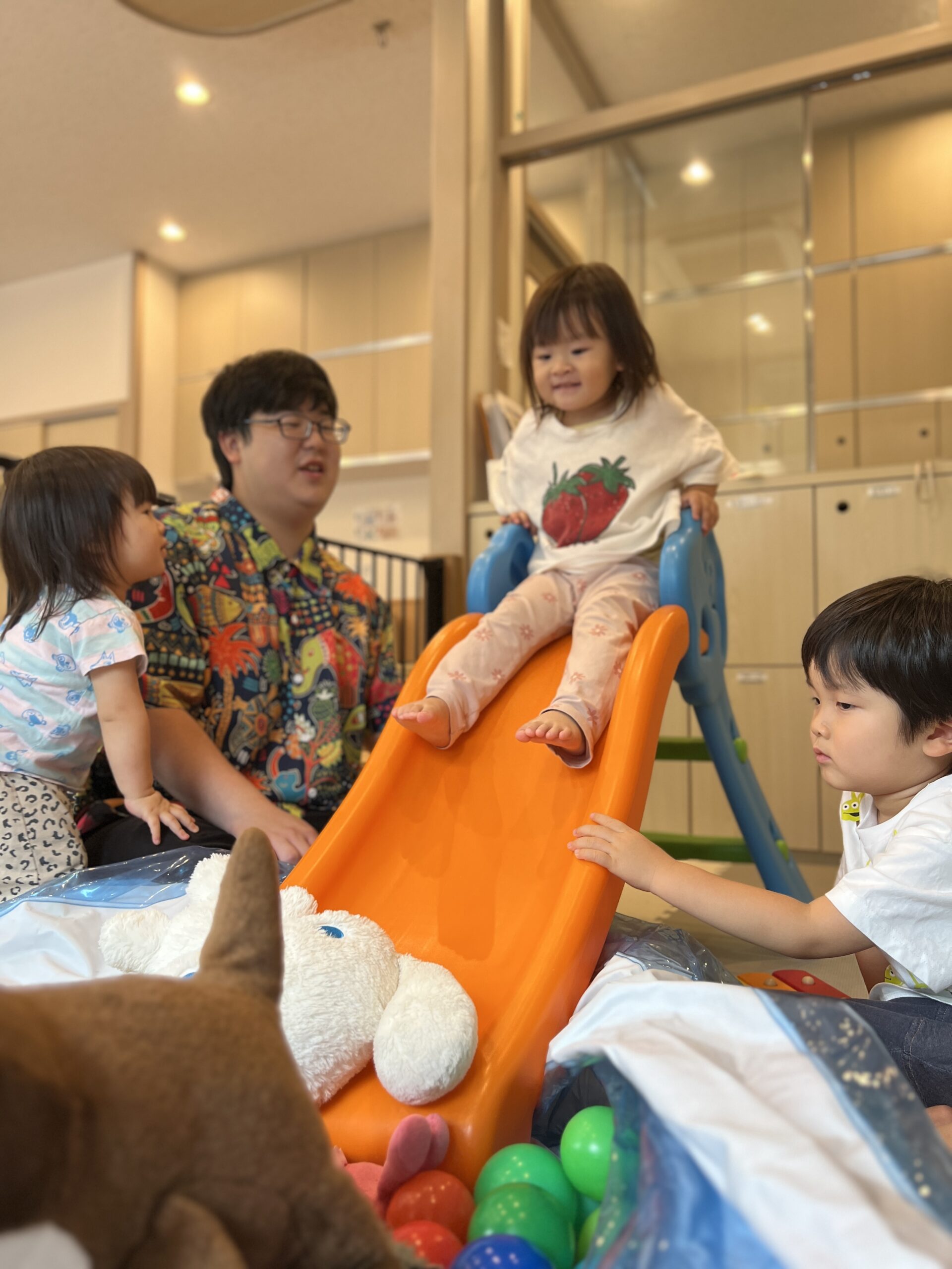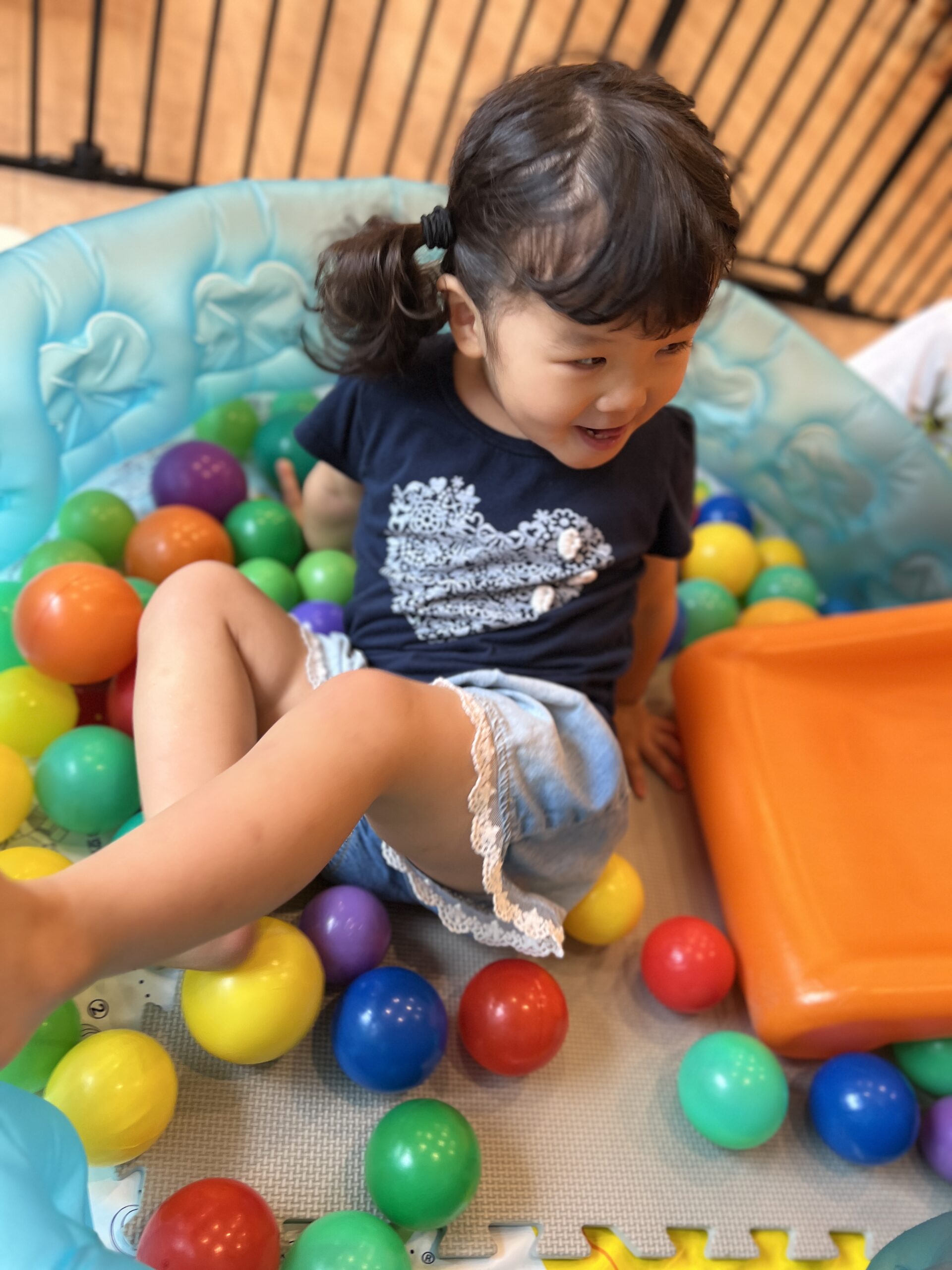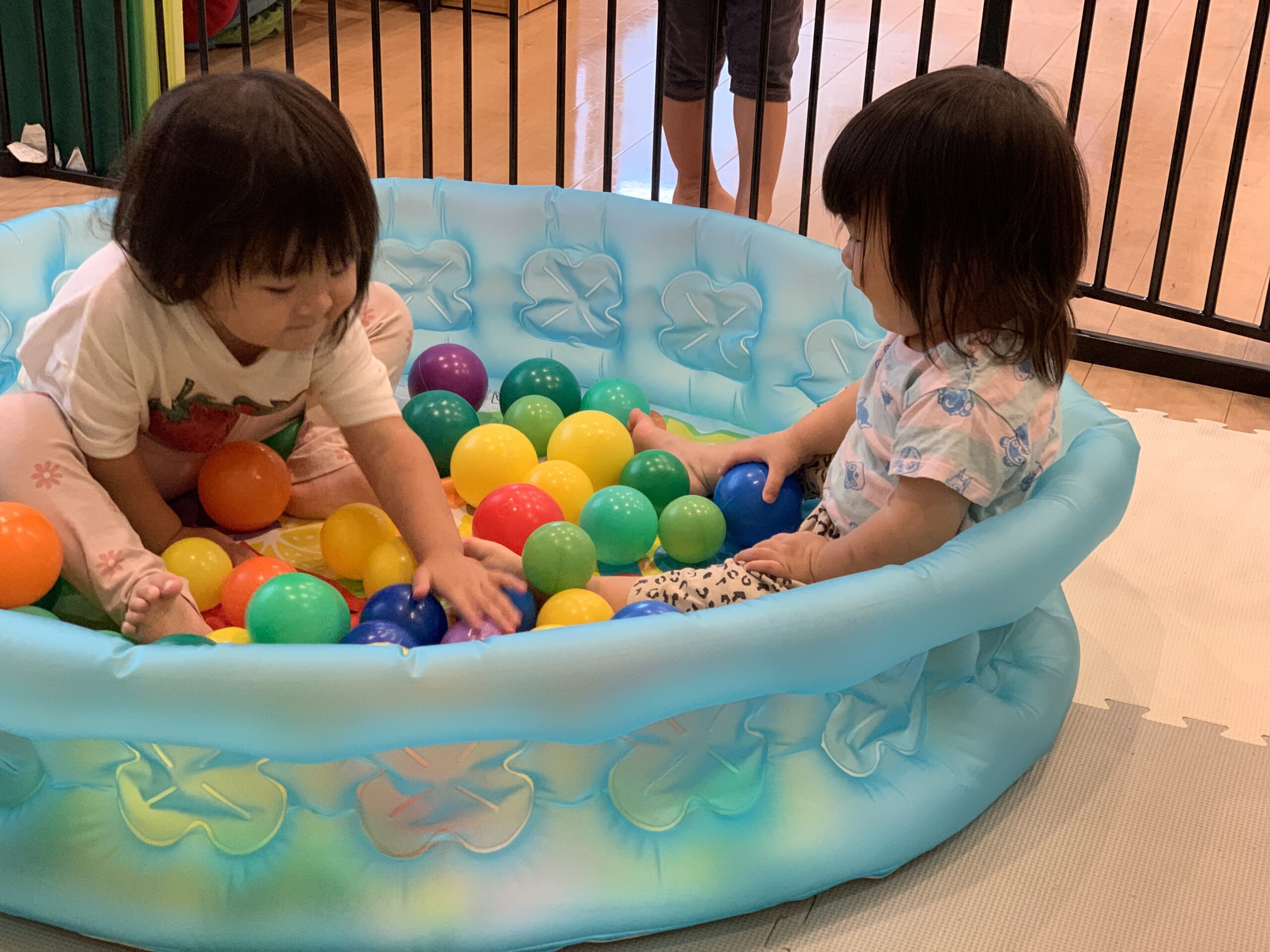 最初はボールプールの中に入ってゆったりと遊んでいた子どもたち。