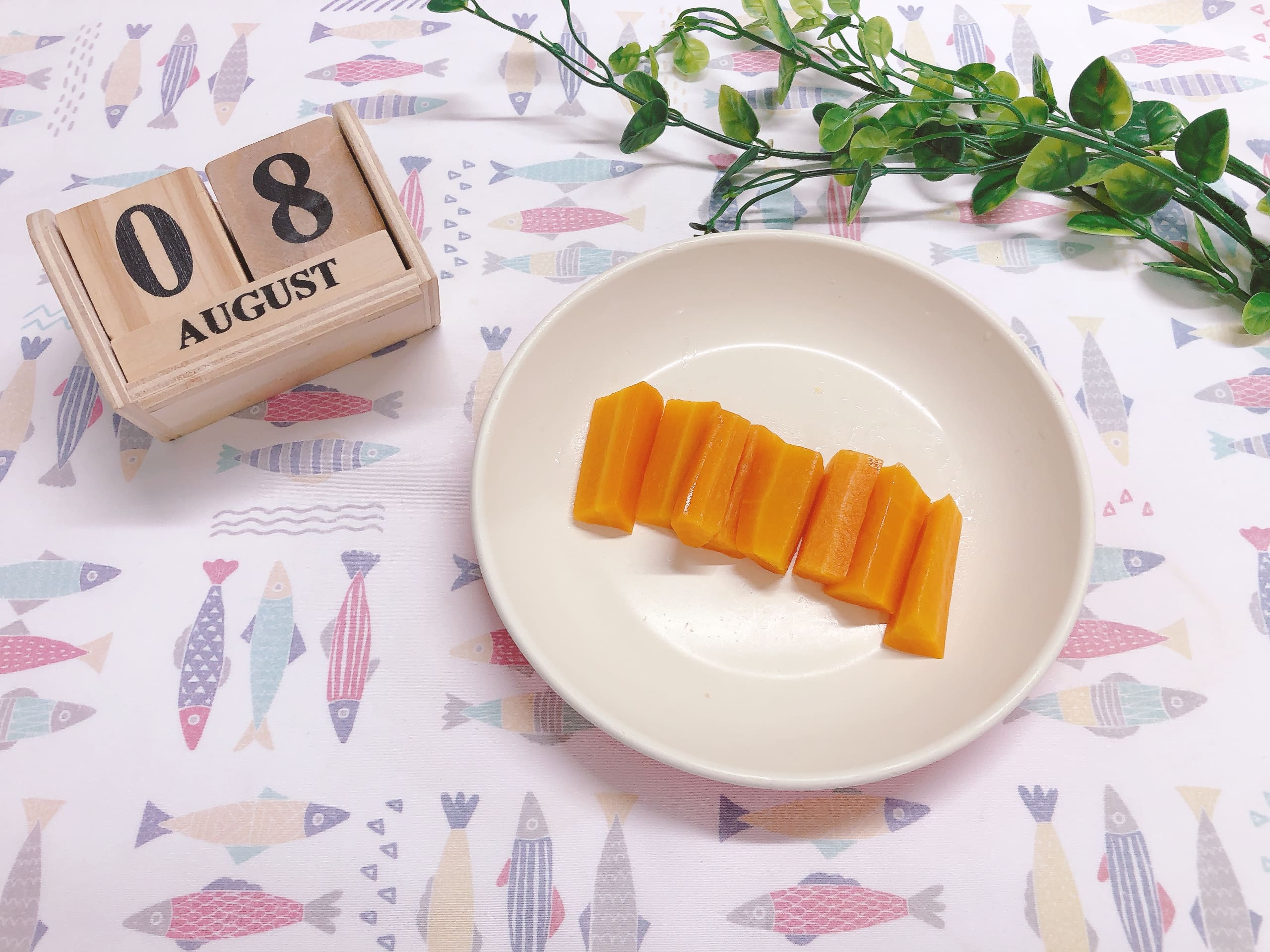 今日のかぼちゃは特別にホクホク!バターでコクを引き出し、素材の甘みがしっかりと伝わるよう工夫しました。「おいしい!」と夢中で食べて、頬や口のまわりを黄色くしながら一生懸命ほおばる姿がとってもかわいかったです。かぼちゃは栄養たっぷりで、夏の体力づくりに大切なビタミンもいっぱいなんですよ。