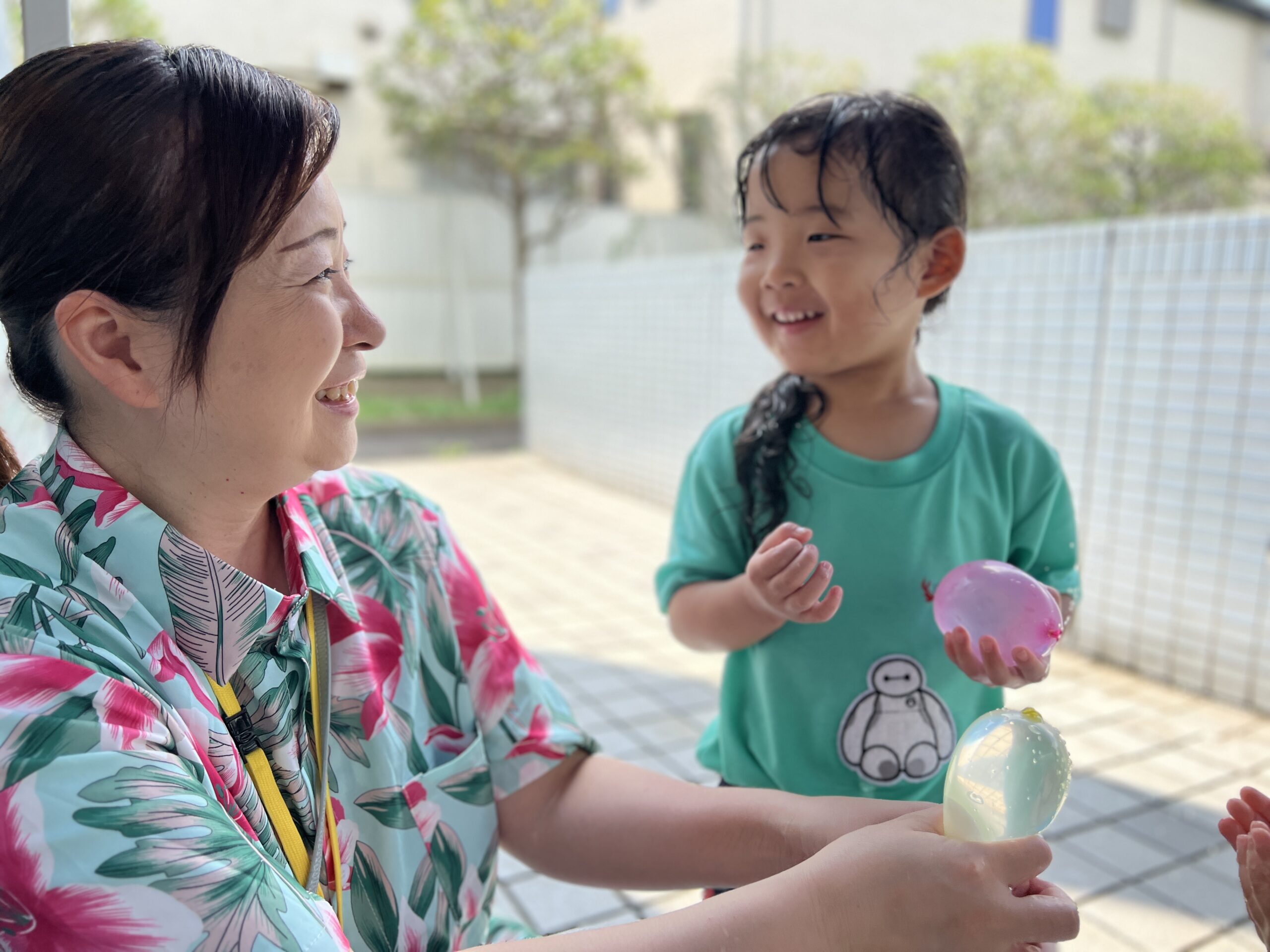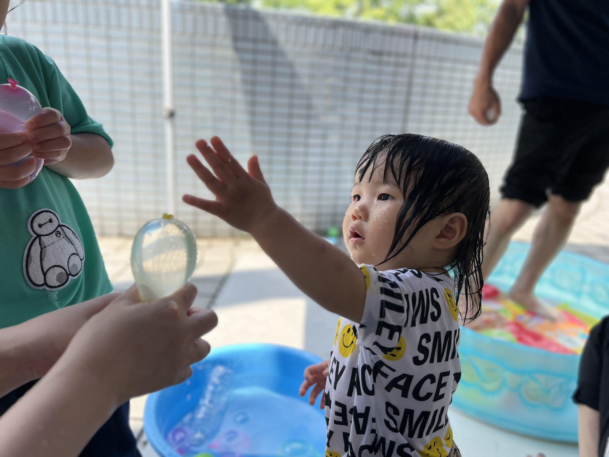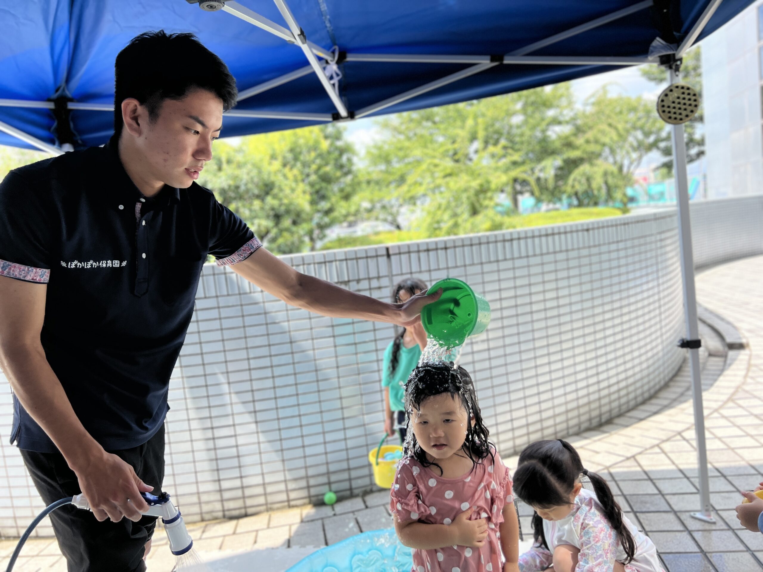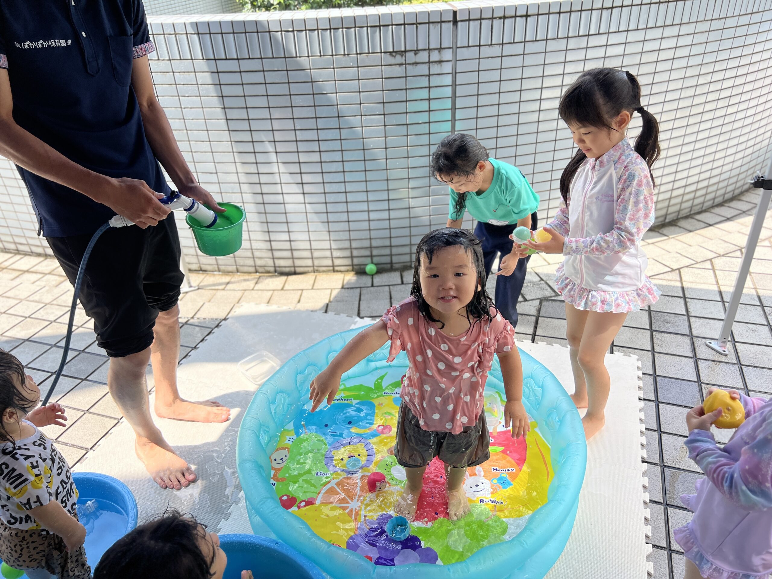 今日は、大和田園のお姉さんたちが遊びに来てくれて、みんなで一緒に水遊びを楽しみました♡