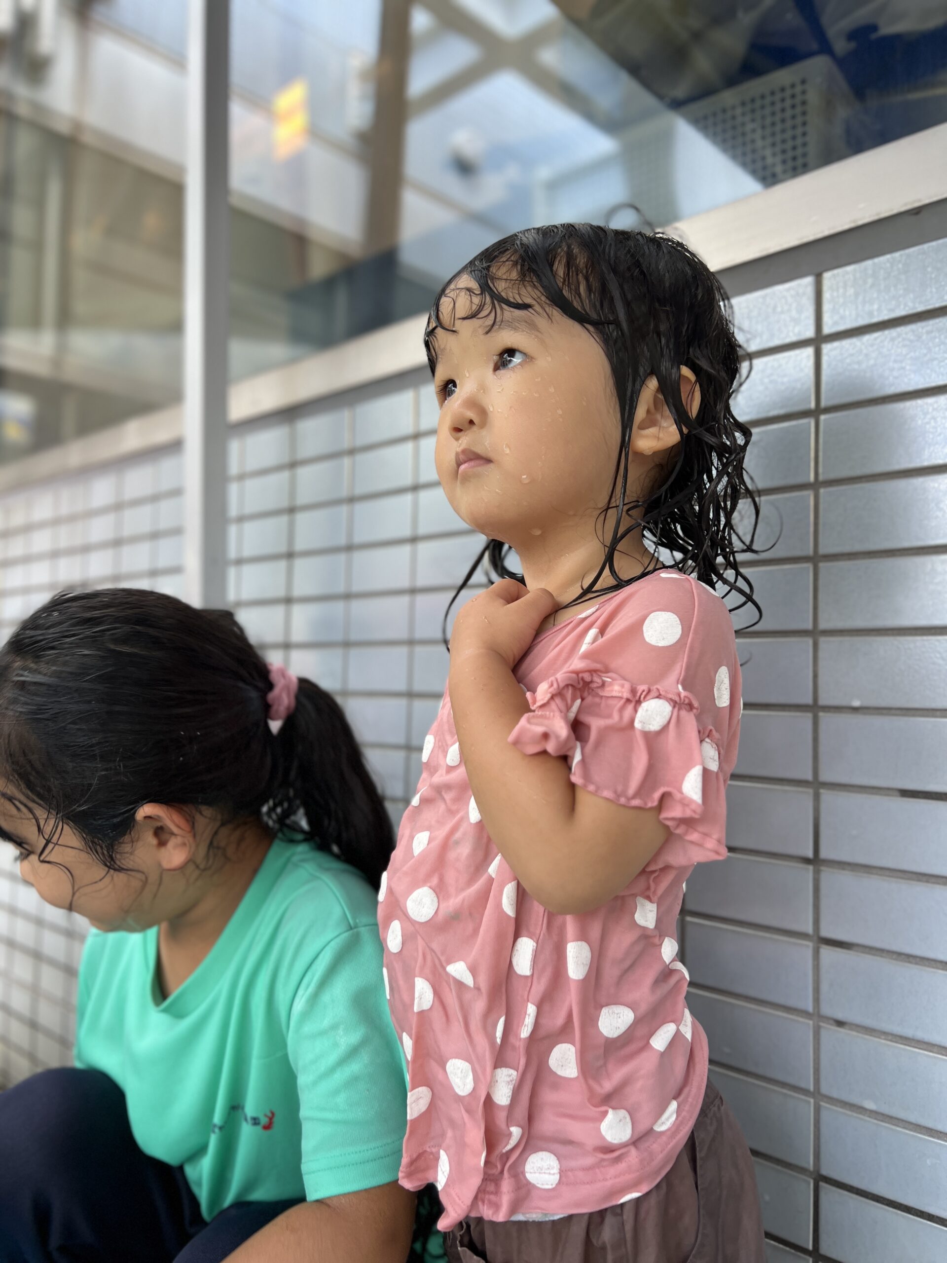 「きもちいいね〜」というつぶやきが聞こえるほど、水の冷たさにニコニコの表情。