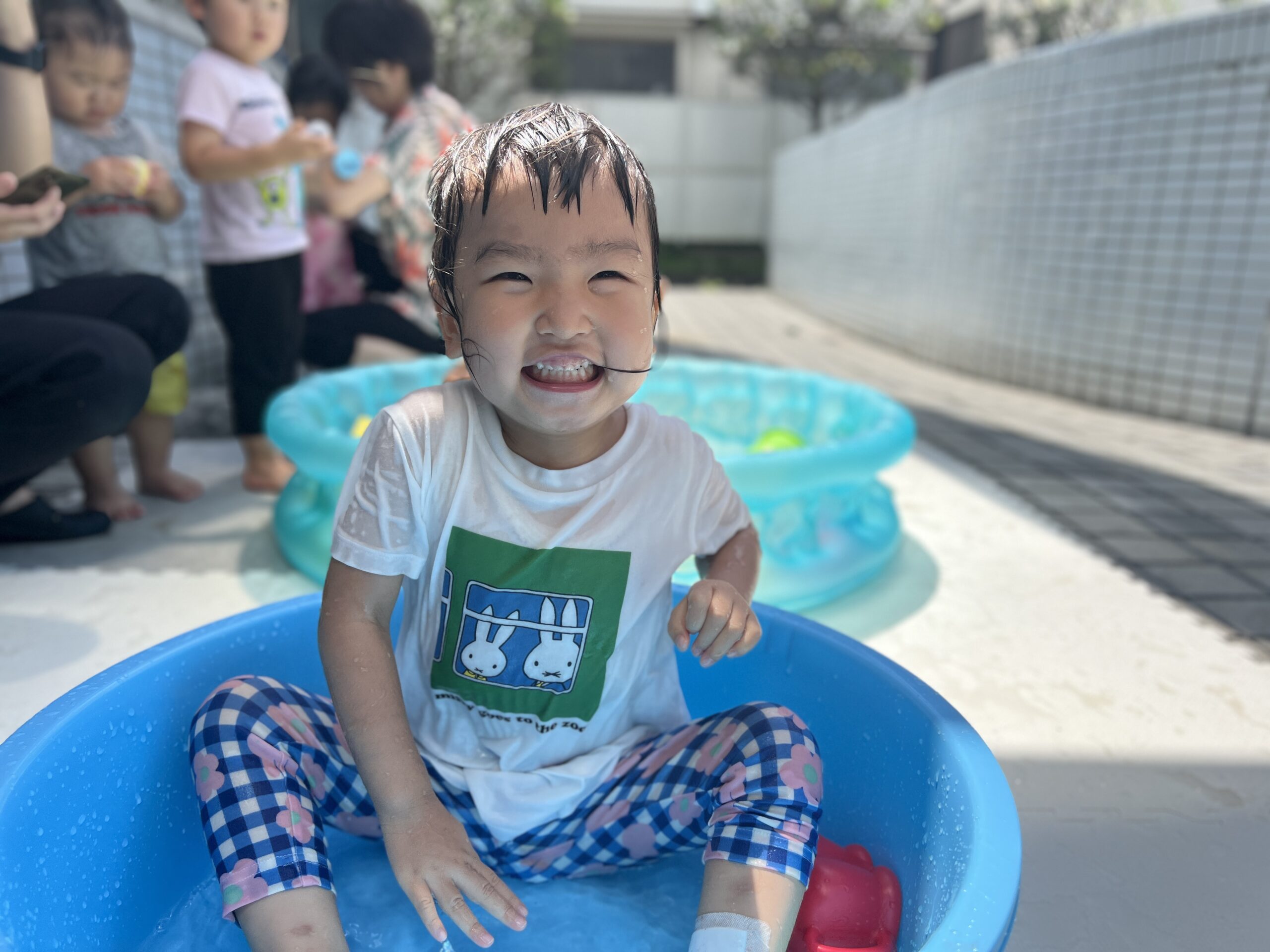 水の冷たさに「きもちいい~!」と声をあげて大喜びする子もいて、外の暑さを忘れてしまいそうなほど、みんな夢中に♡