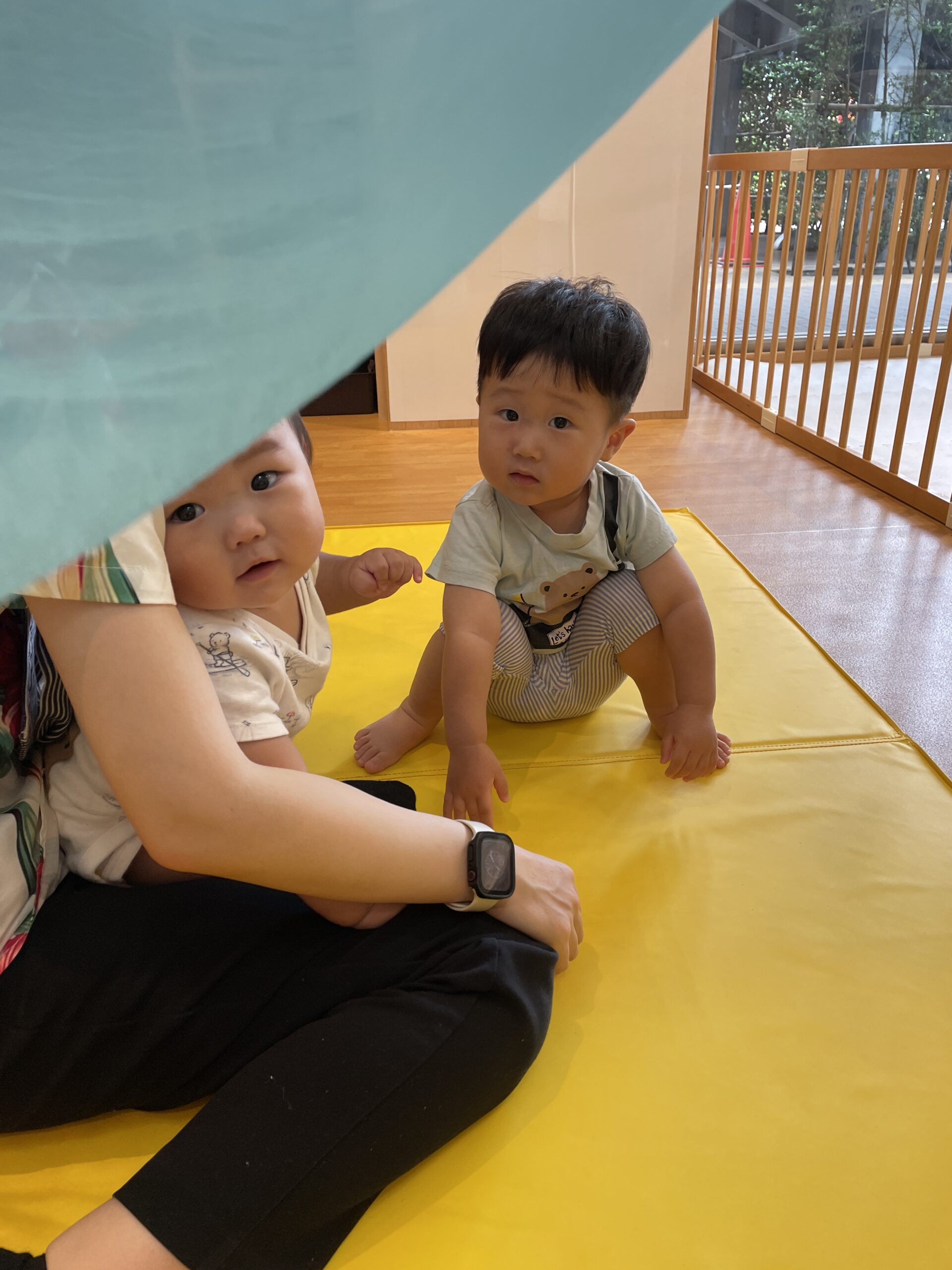 青空ぐみさんは、海の中をイメージして大きなスカーフ遊び♪